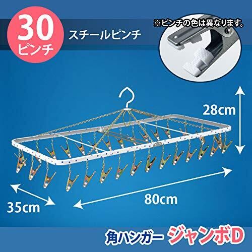 ニシダ 洗濯物干し 角ハンガー ジャンボ D ピンチ30個 水玉 ブルー 幅80×奥行35×高さ31cm フレームもピンチもスチール製なので丈夫で長持ち