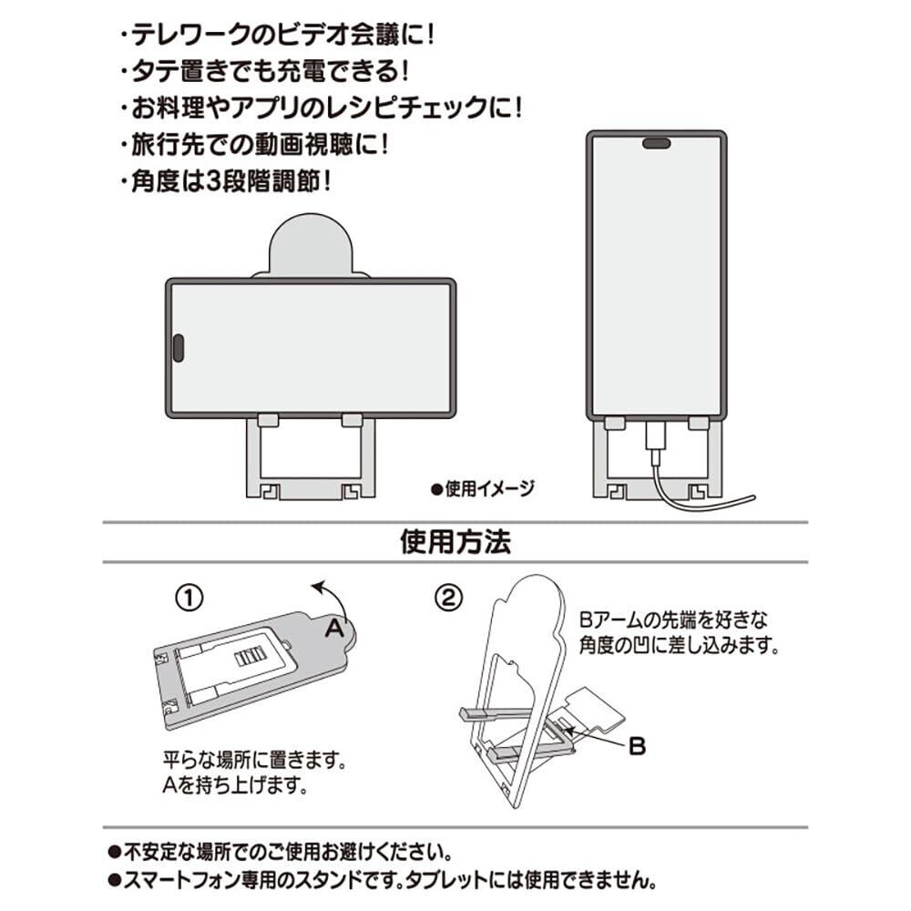 スリムにたためて持ち運びに便利。テレワークのビデオ会議に。タテ置きも充電可能。お料理アプリのレシピチェックに。旅行先での動画視聴に※スマートフォン専用のスタンドです。タブレットには使用できません。