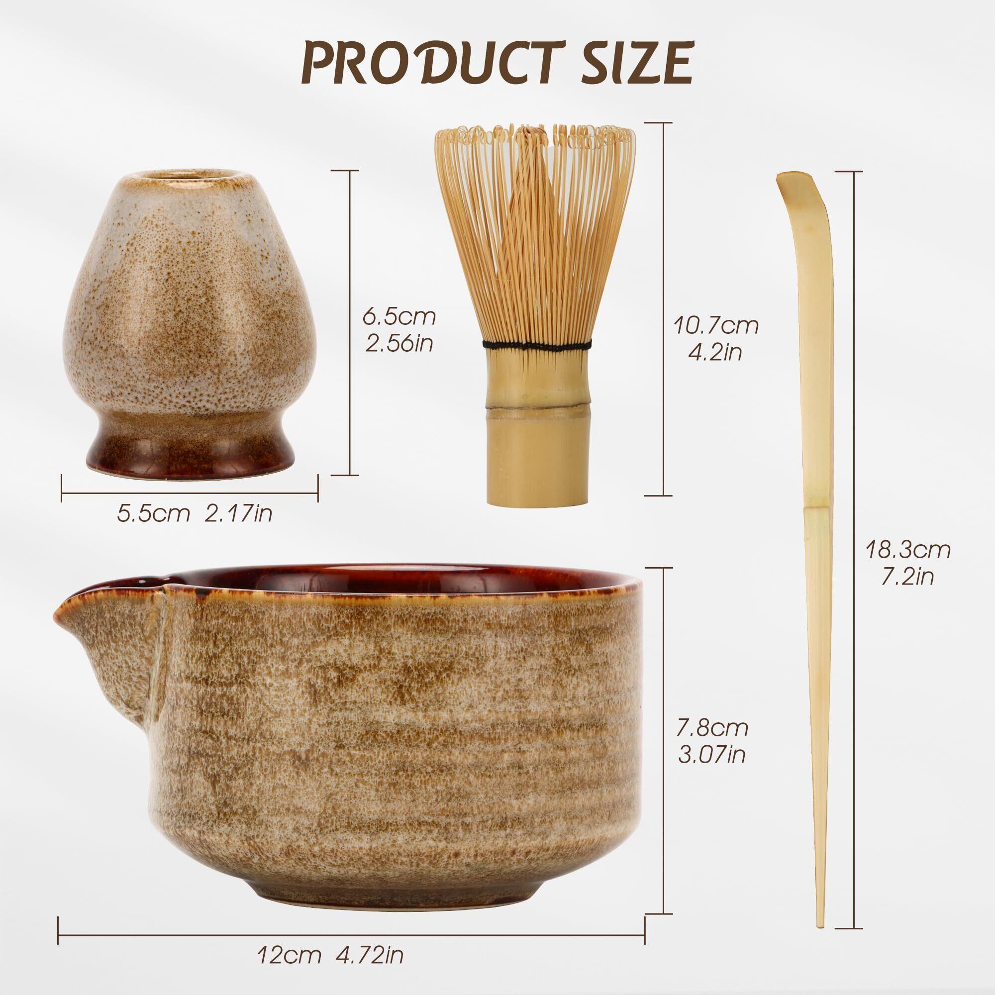 DiDiBirDi 抹茶碗セット、茶道4点セット、抹茶茶碗、抹茶泡立て器スタンド、抹茶竹スコップ (茶杓)、伝統的な竹製茶筅 (茶筌)、茶道愛好家の贈り物