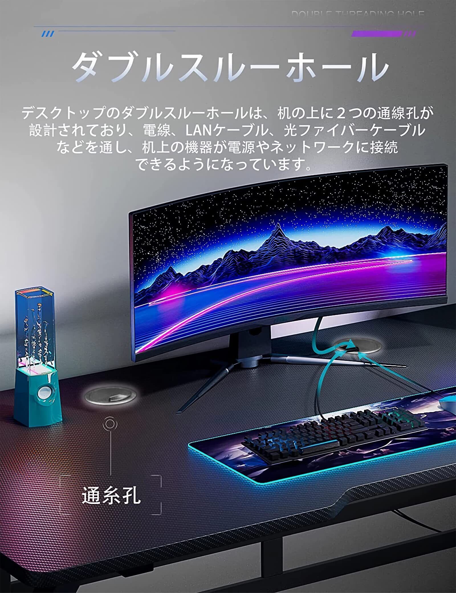 便利なケーブル管理:コンピュータデスクには2つの配線穴があり、コンピューターやモニター、スピーカーなどの周辺機器のケーブルを整理できます。ケーブルが乱雑になることなく、デスク上をすっきりと使うことができます。美観性を向上させ、部屋全体の印象をスマートに演出します。