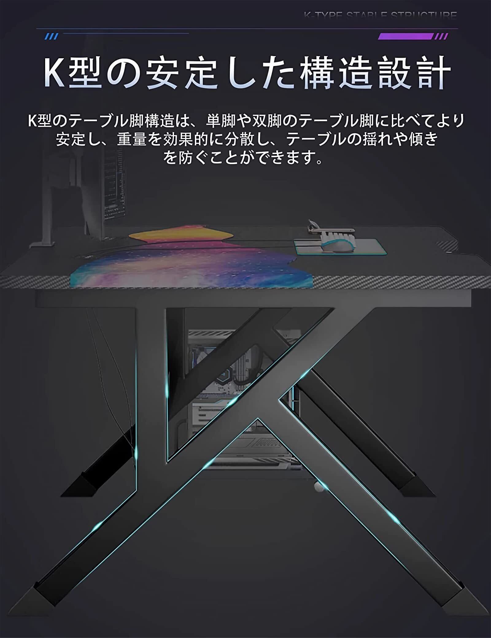 耐久性に優れた構造:パソコンデスクはK字型鋼脚と工字型横梁の構造を採用しており、安定性と耐久性に優れています。最大100kgの重量にも耐えられるため、必要な機器を安全にサポートします。さらに、防滑フットパッドも付いており、デスクがしっかりと地面に固定され、滑りや揺れを防止します。