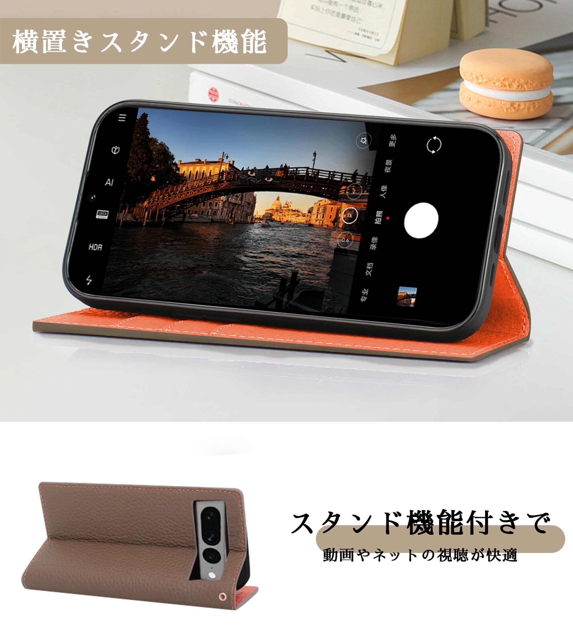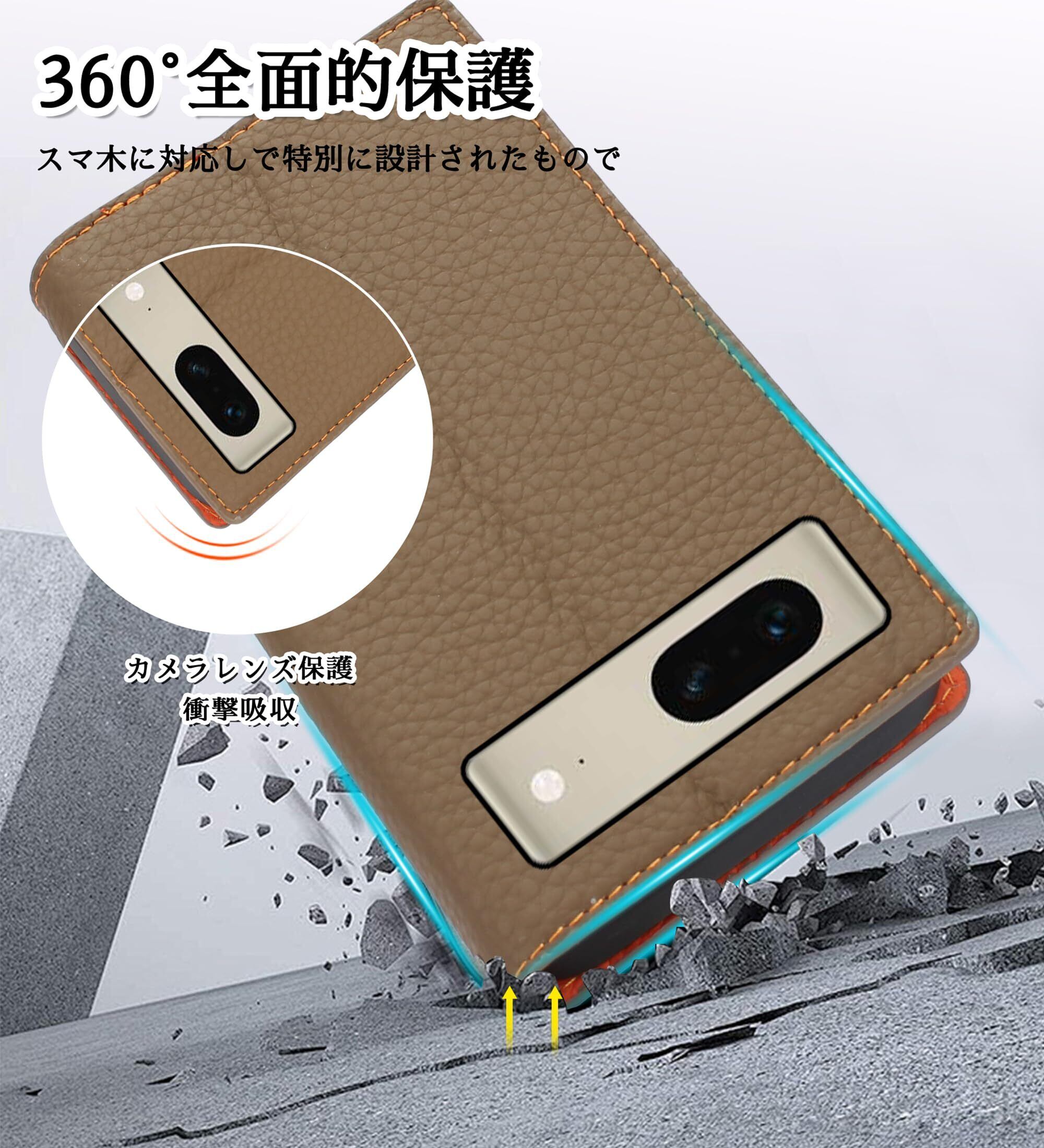 CLICSUN Google Pixel 8 対応ケース 高級 牛本革 Pixel 8 対応 カバー 手帳型 グーグル ピクセル 8 ケース 本革 レザー カバー 全面保護 衝撃吸収 スタンド機能 ストラップ付き マグネット式 カードポケット ギフトボックス付き ブラウン