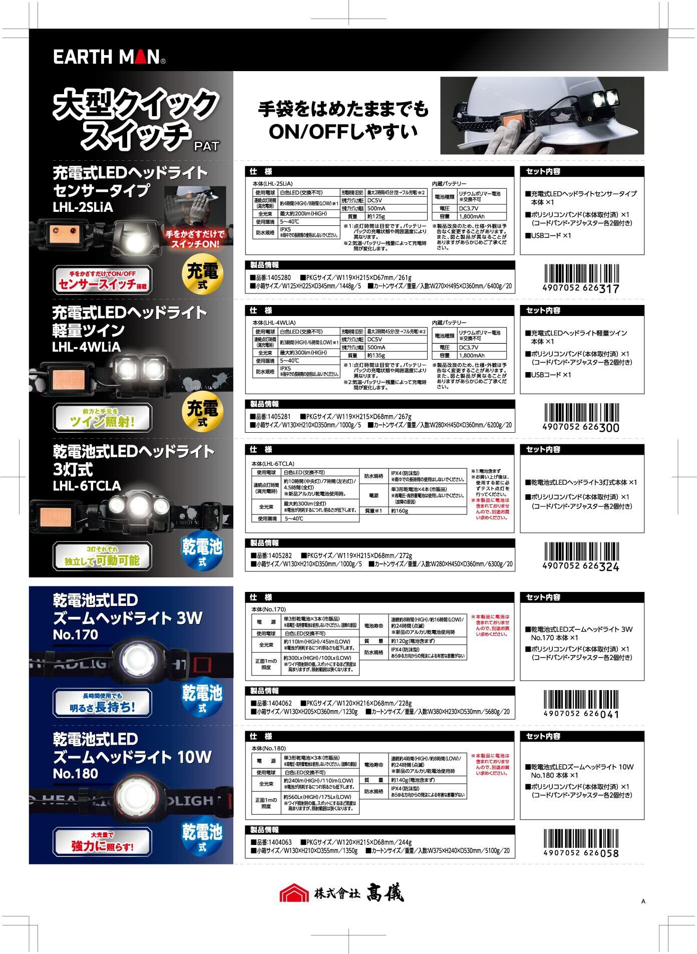 高儀 EARTH MAN ACTIVE STYLE 10W LEDズームヘッドライト No.180