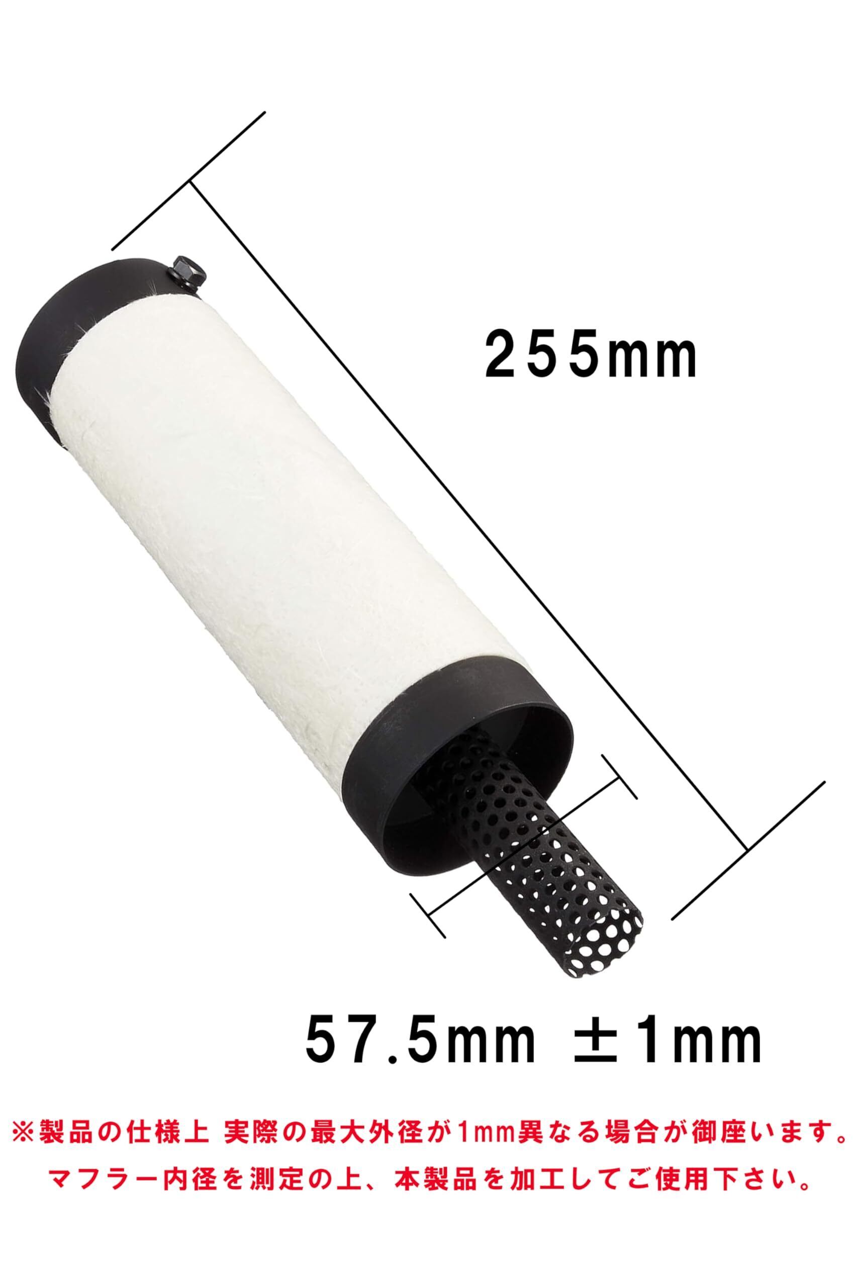 ●筒型グラスウールを装着することにより、従来商品より消音効果を高めました。直管タイプマフラー用。M6X15固定ボルト付。本製品の最大径は表記サイズと比べ約1mm異なりますので取り付けの際は、マフラー内径に合わせて本製品を加工して下さい。
