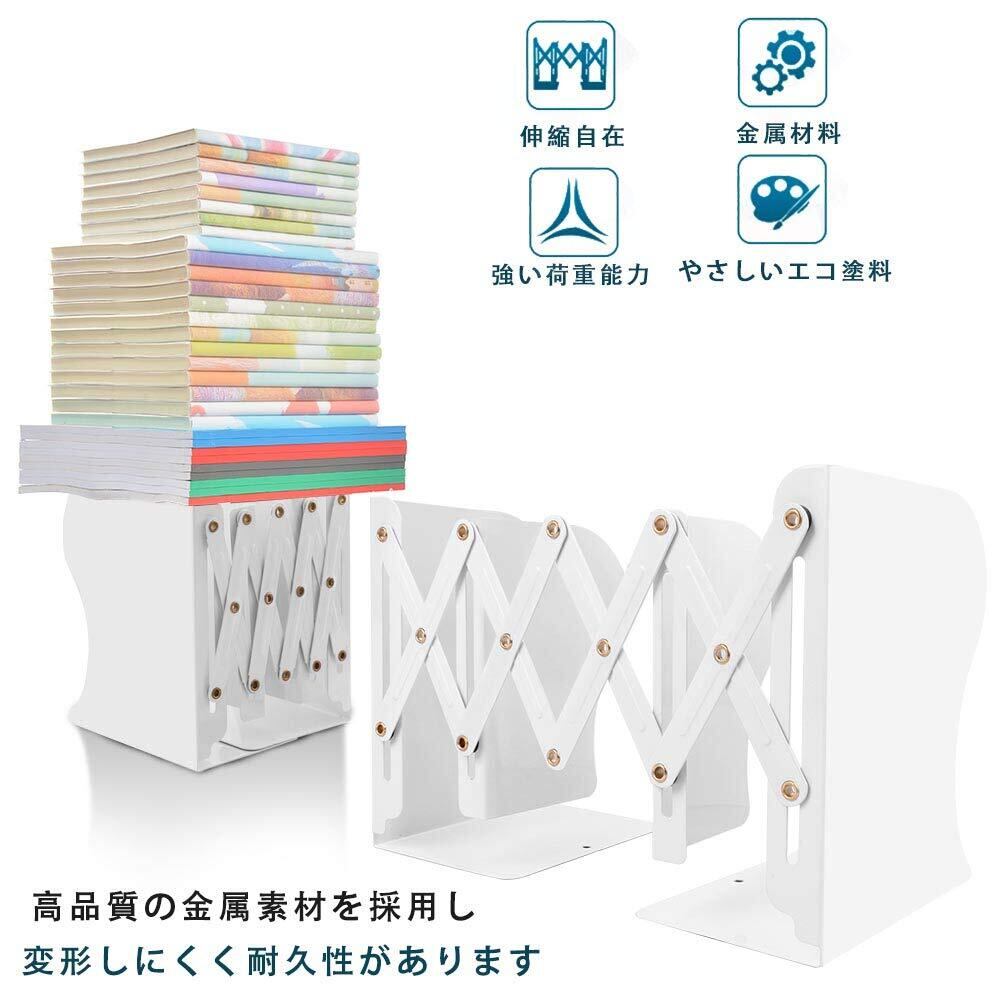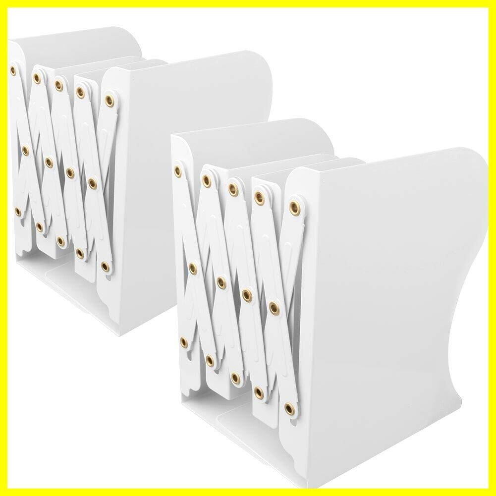 Youtumall ブックスタンド 2個入り 本立て 伸縮自在 卓上収納 倒れない ブックエンド 金属製 仕切りスタンド デスク整理 (2個-白)