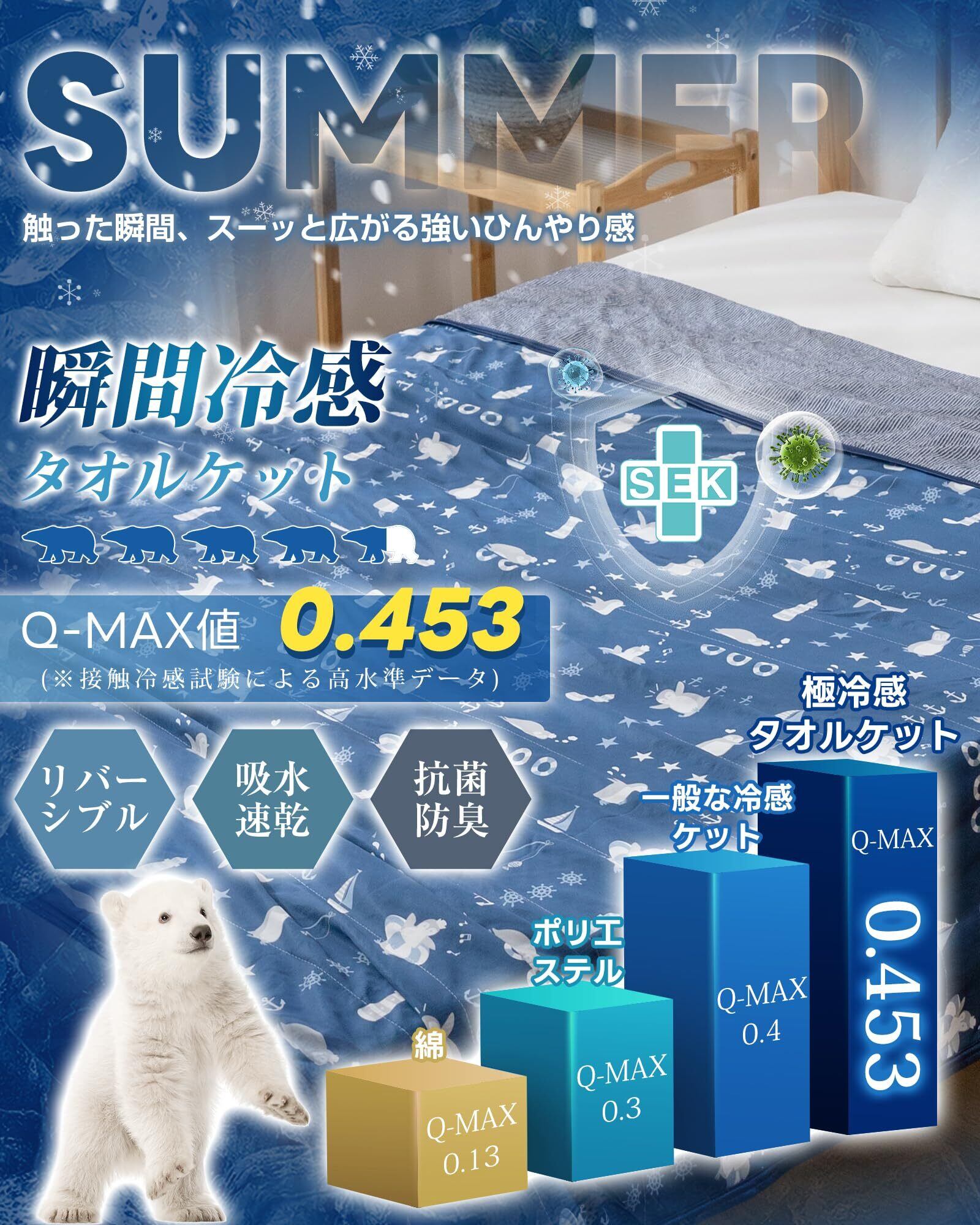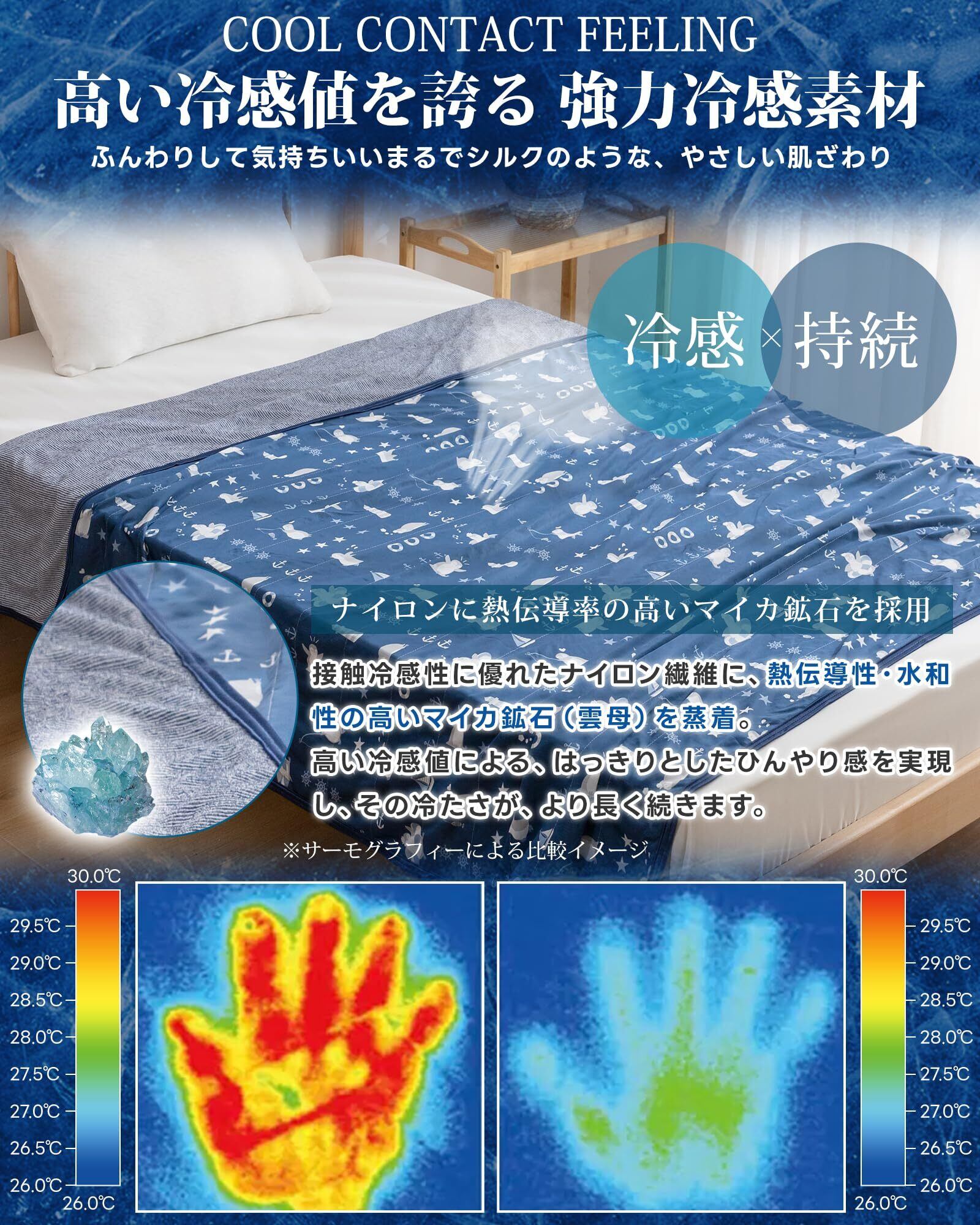 【接触冷感:Q-MAX値は0.453!】化学用品を添加しない接触式冷感素材を利用!寝返りのたびに心地良いひんやり感が伝わり、寝苦しい夜にもひんやりとした感触をお楽しみいただけます。冷房との併用でさらにひんやり!やさしくお肌を守る-薄着で寝ることが多い夏に、エアコンの風や乾燥からお肌をまもります。肌あたりひんやり、寝苦しい夜も心地よく眠りにつけるクールケットです。
