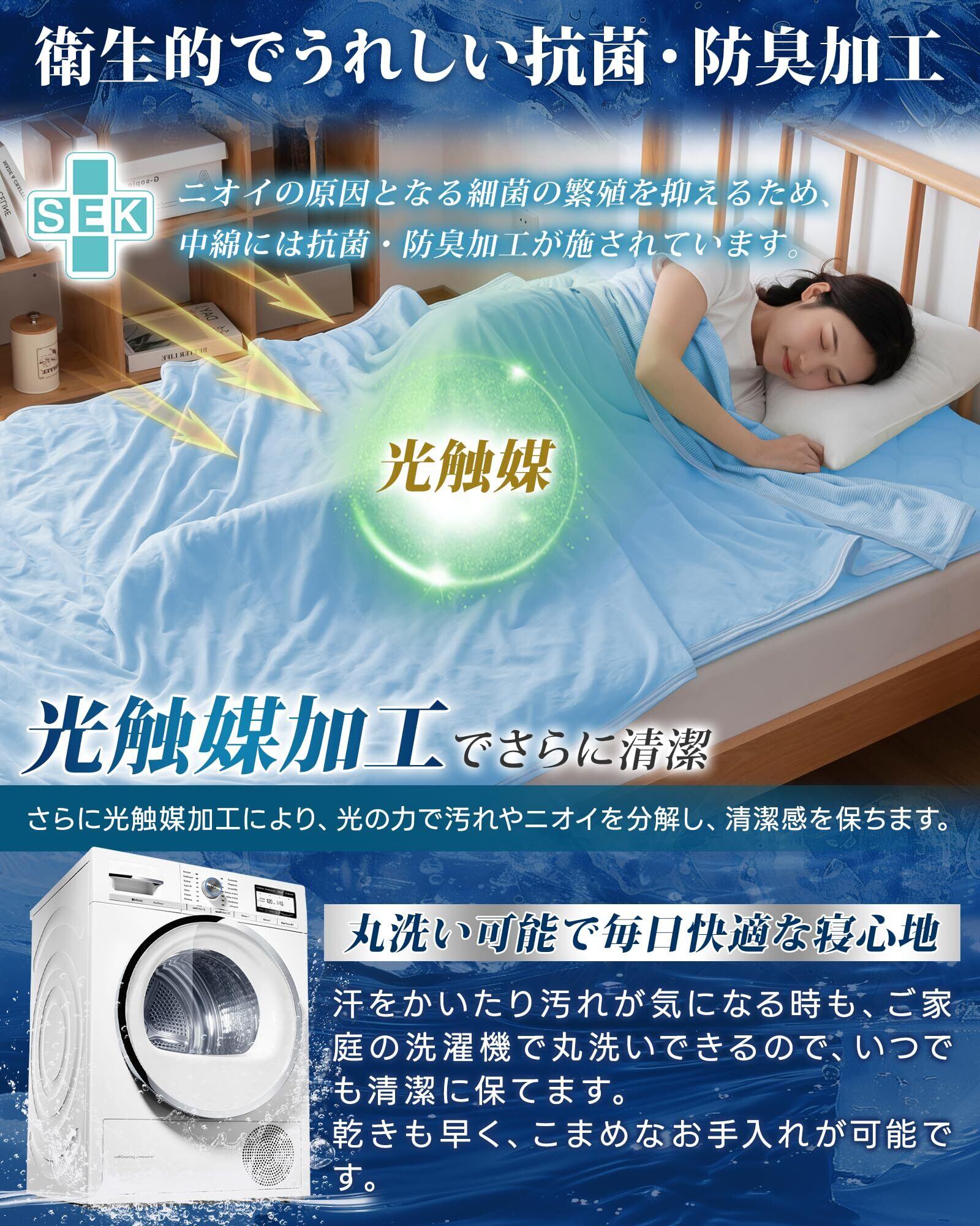 【接触冷感:Q-MAX値は0.45!】化学用品を添加しない接触式冷感素材を利用!寝返りのたびに心地良いひんやり感が伝わり、寝苦しい夜にもひんやりとした感触をお楽しみいただけます。冷房との併用でさらにひんやり!やさしくお肌を守る-薄着で寝ることが多い夏に、エアコンの風や乾燥からお肌をまもります。肌あたりひんやり、寝苦しい夜も心地よく眠りにつけるクールケットです。
