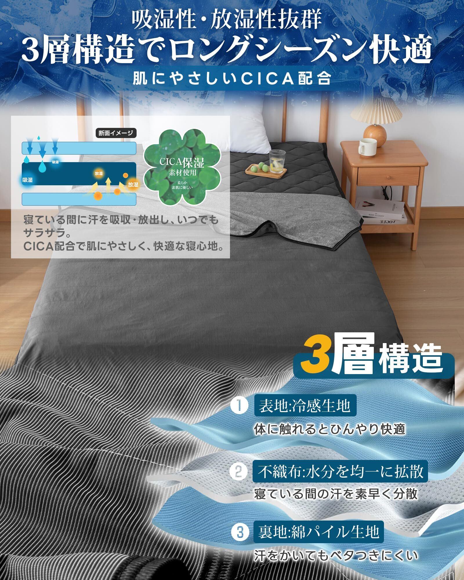 【接触冷感:Q-MAX値は0.453!】化学用品を添加しない接触式冷感素材を利用!寝返りのたびに心地良いひんやり感が伝わり、寝苦しい夜にもひんやりとした感触をお楽しみいただけます。冷房との併用でさらにひんやり!やさしくお肌を守る-薄着で寝ることが多い夏に、エアコンの風や乾燥からお肌をまもります。肌あたりひんやり、寝苦しい夜も心地よく眠りにつけるクールケットです。