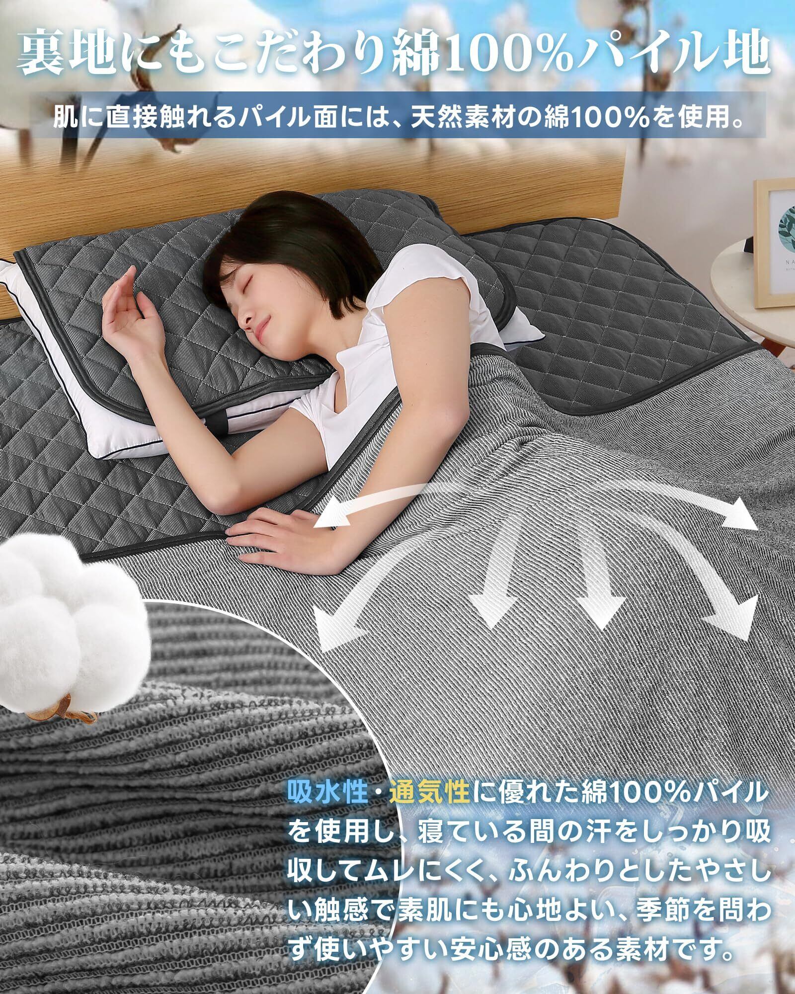 【綿100%タオル地】コットン素材は優れた通気性・吸湿性があり、不快な汗や湿気を吸って、素早く乾きます。いつもさらりと快適。肌触りがふんわりして、敏感なお肌の方でも心地良く快適に過ごすことができます。夏の深夜の時、温度が下がって、この面を使用してちょうどいい。