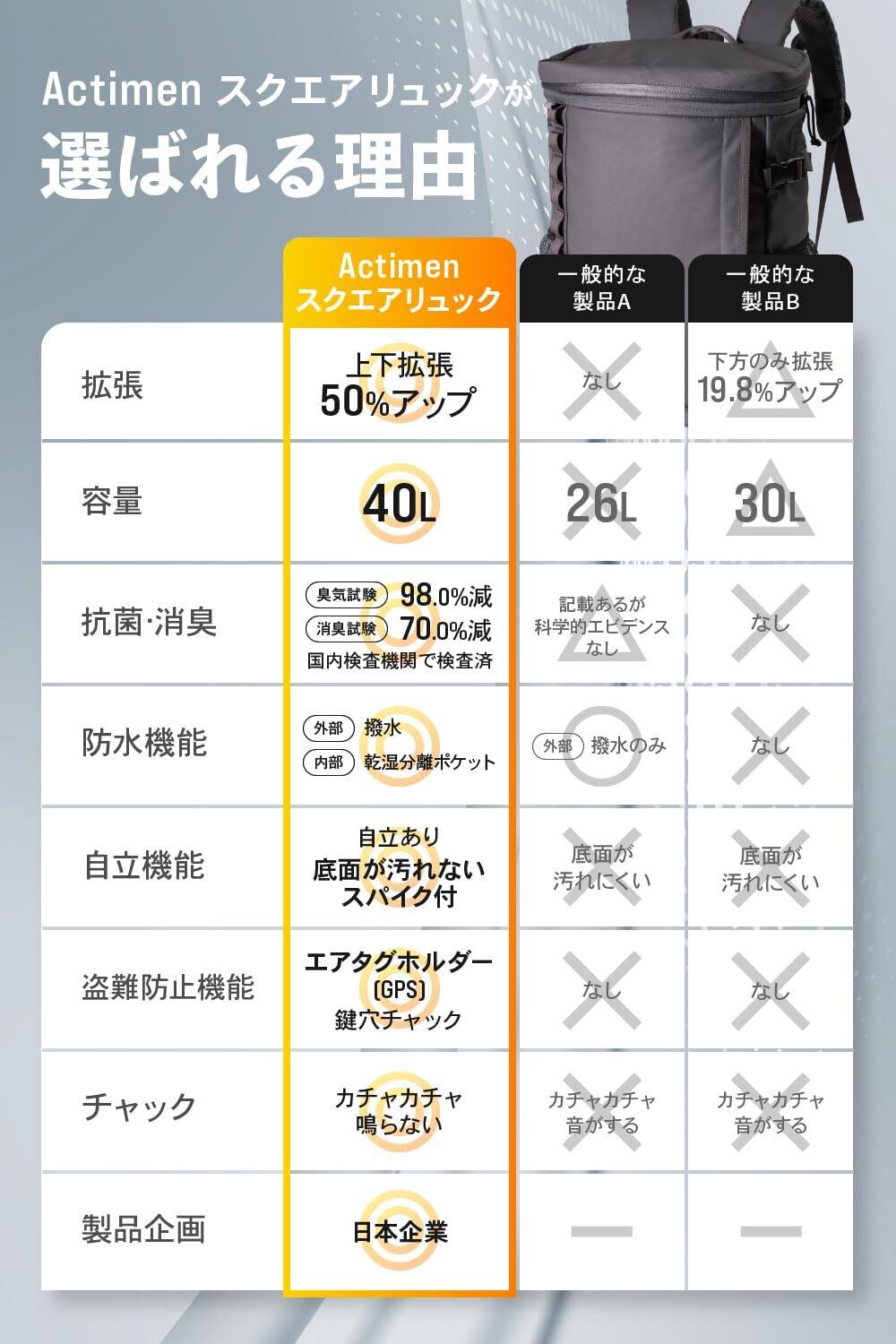 [アクティメン] 【上下拡張×消臭機能】リュック メンズ 大容量 26L 40L リュックサック スクエア バックパック 防水 自立 16インチ PC ビジネス 通勤 通学 防災 スポーツ
