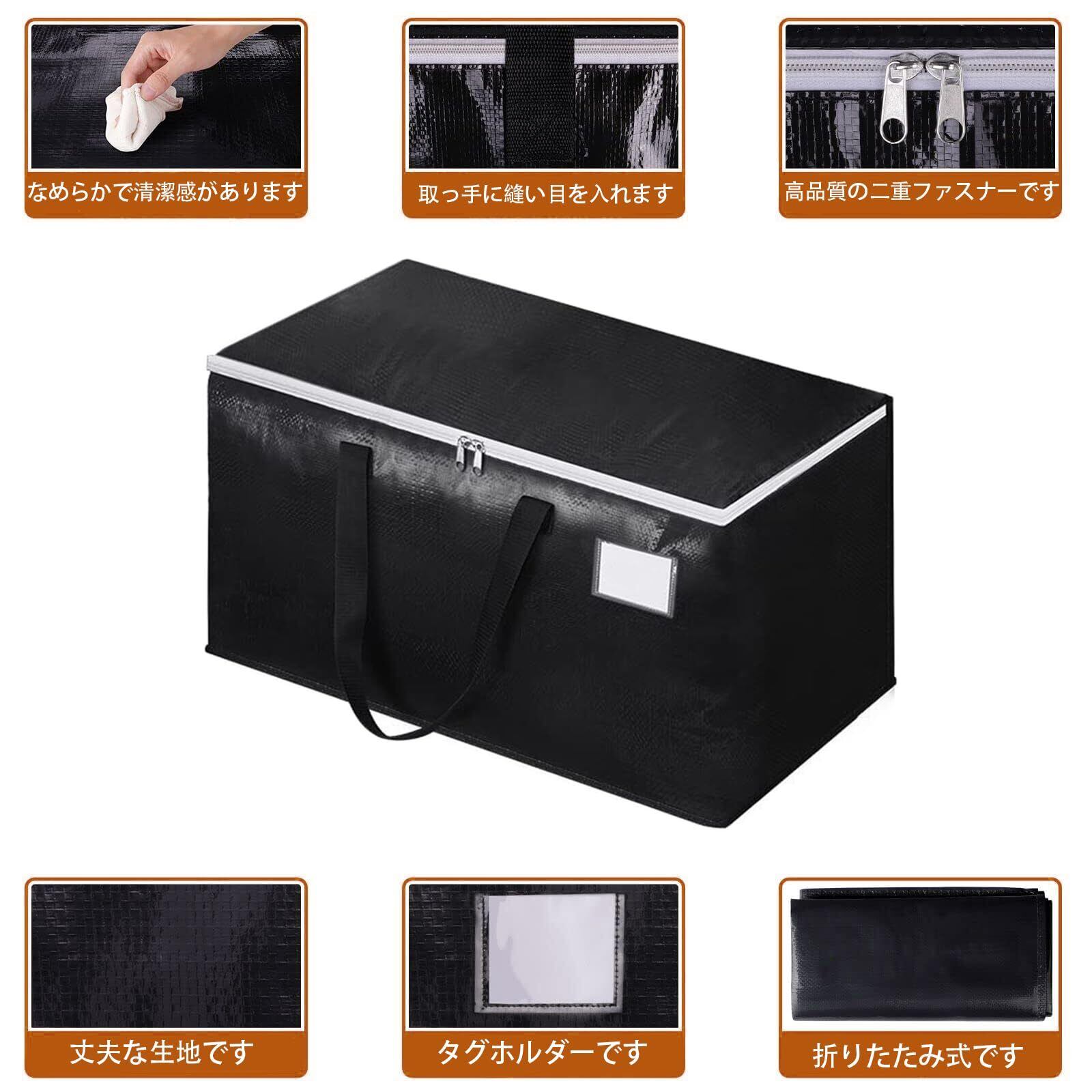 布団収納バッグ 特大 布団収納ケース 持ち手付きふとん収納袋 大容量引っ越しバッグ 折りたたみ式掛け布団収納袋 スボーツ アウトドア キャンプ 旅行 衣類収納袋 (ブラック色 4枚組)