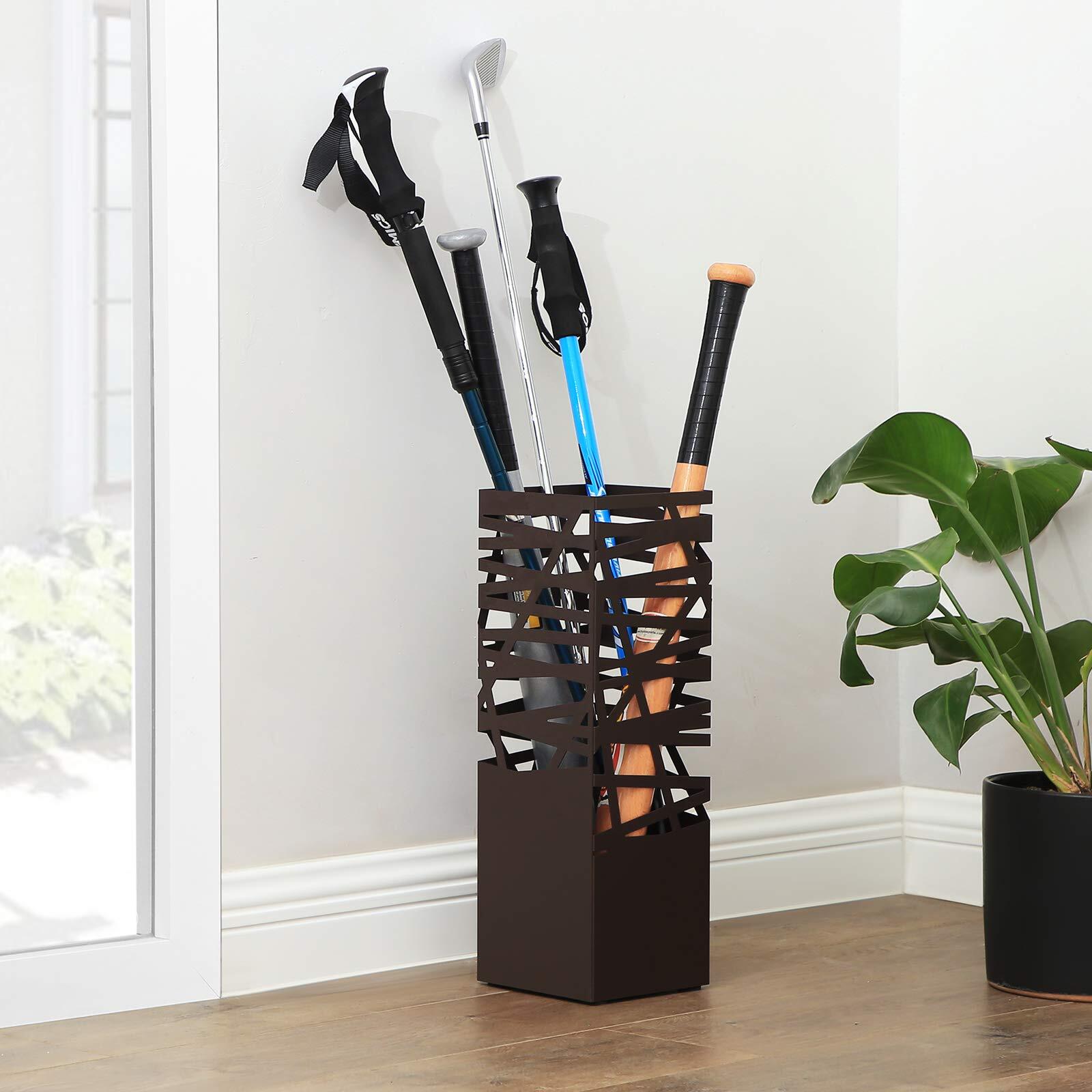 SONGMICS 傘立て 傘入れ 折り畳み傘兼用 コンパクト 安定 業務用 傘収納 着脱式水受け皿付き 玄関収納 インテリア ブラウン LUC47ZV2