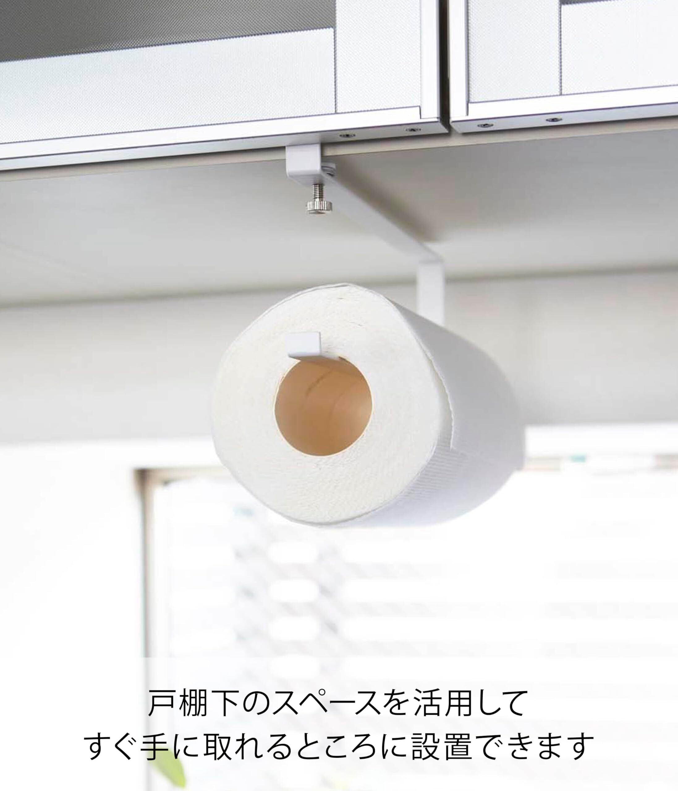 ●吊り戸棚に簡単取り付けのキッチンペーパーホルダー。ネジでしっかり固定!
