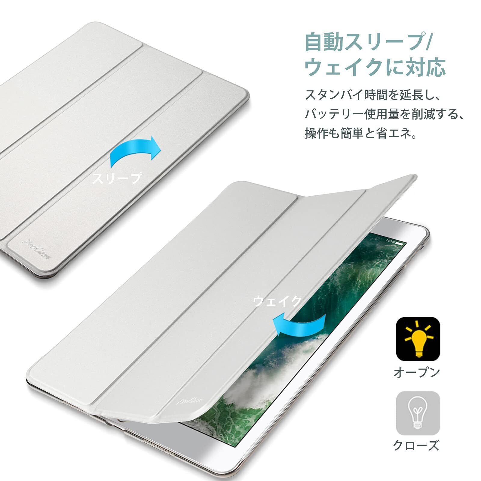 ProCase iPad 9.7"(旧型)ケース スマート 超スリム スタンド フォリオ保護ケース 半透明フロスト バックカバー 対応機種:iPad 9.7" 第6世代 2018 / 第5世代 2017 - シルバー
