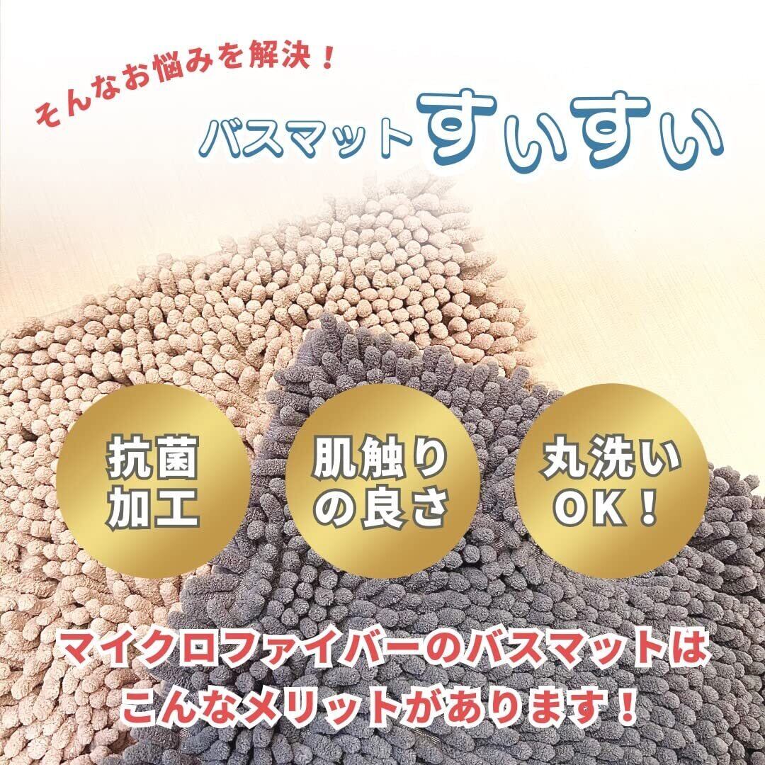【バスマットすいすい】バスマット 速乾 大判 吸水 マイクロファイバー 洗える 滑り止め 抗菌加工 おしゃれ トイレ 洗面所用 40×60cm グレー