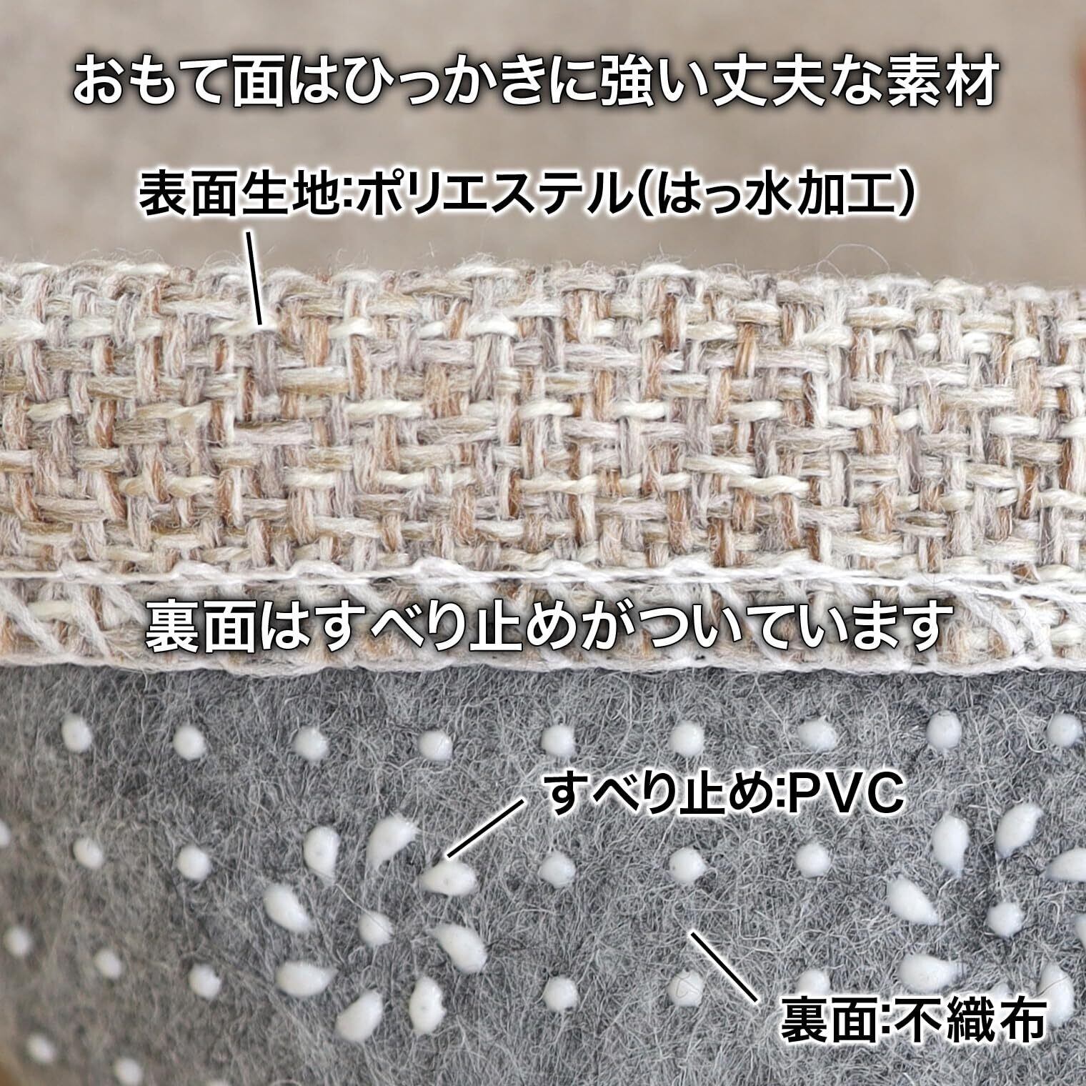 ●塩化ビニル製クッションフロアでご使用の場合は、1週間に1度を目安に床面を拭くかマットの指揮位置を変えてください。●塩素系漂白剤や乾燥機は使用しないでください。