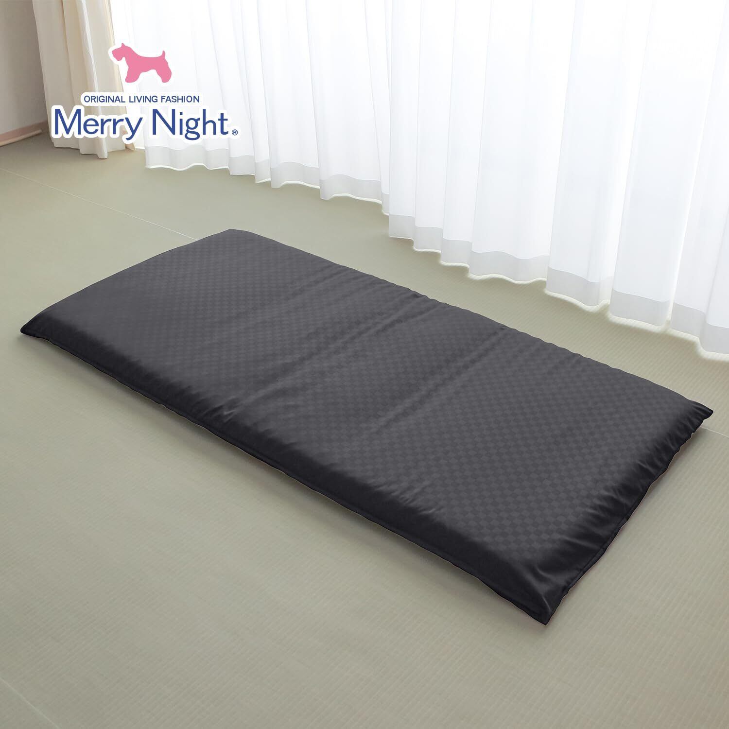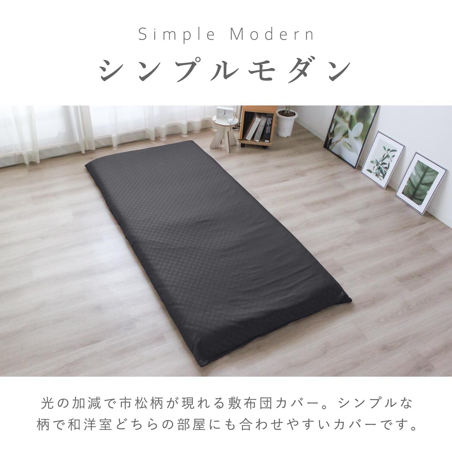 メリーナイト 敷き布団カバー 市松柄 ブラック シングルロング 約105×215cm 光沢感 和モダン 速乾 シワになりにくい 洗える PE13101-01