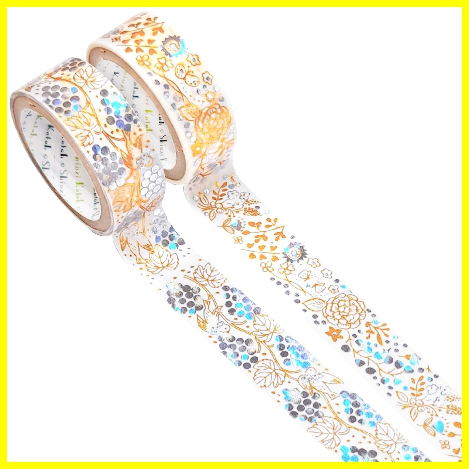 シール堂 日本製 2色箔 きらぴかマスキングテープ 星アカリ 2巻 セット フラワー・葡萄と鳥 Shinzi Katoh 3m巻 ks-dt-20111