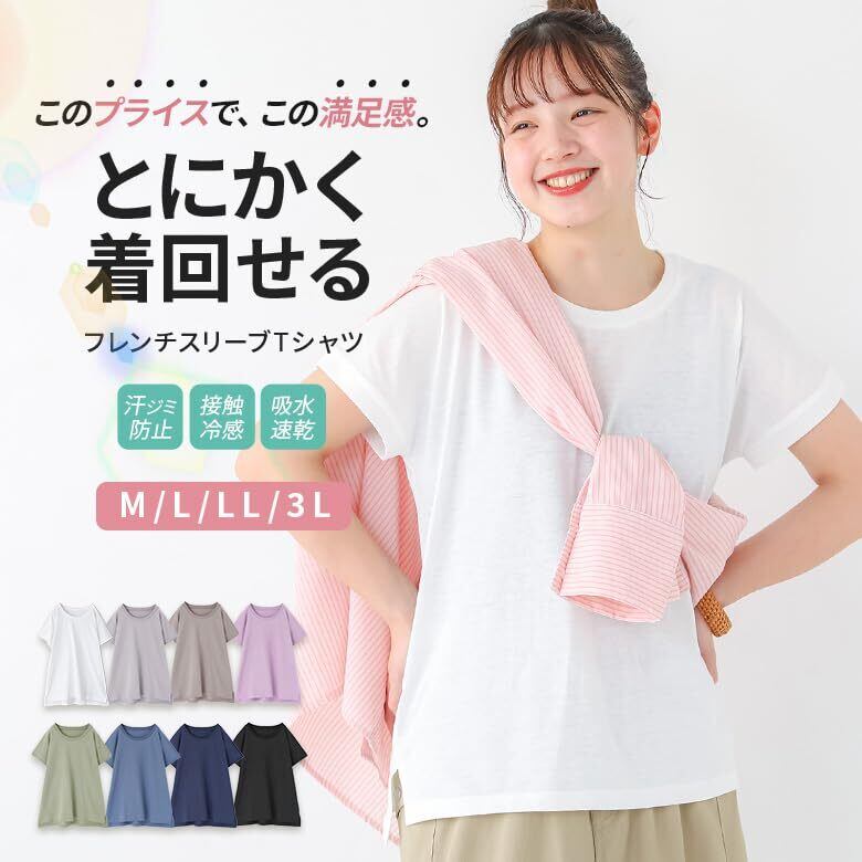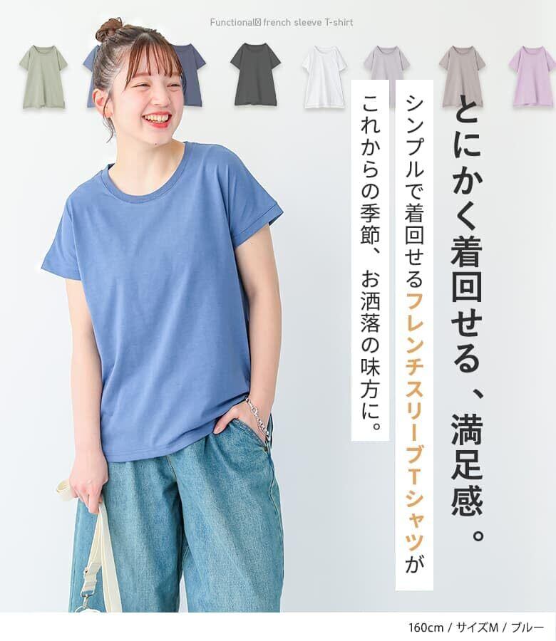 [n'OrLABEL] オシャレウォーカー【フレンチTシャツ】レディース トップス Tシャツ カットソー プルオーバー クルーネック フレンチスリーブ ショートスリーブ 半袖 ティーシャツ 丸首 カジュアル 着痩せ 無地 シンプル 11tn04a