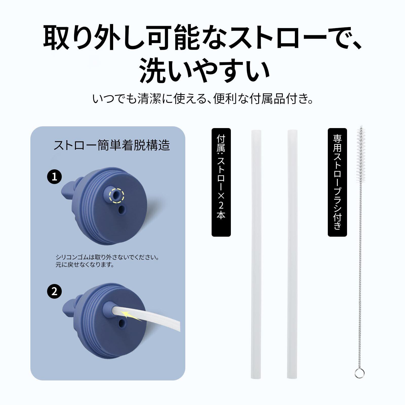 デザインが優れる:大きめの氷もでも入れやすいです。広口タイプで洗いやすくて隅々まで楽々と丸洗いできます。フタさえ分けて洗えます。容量が大きくて、サイズも二種あります。たとえ激しい室外活動でも、一本で十分な飲み物が用意できます。外形はさっぱりしていて、色んなカラーが選べます。男女にかかわらず、お客様の要望を満足させます。