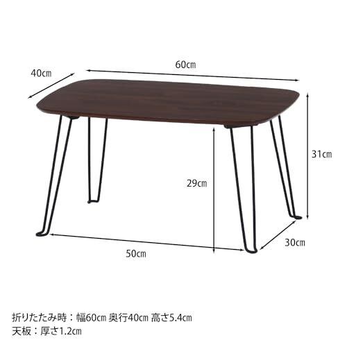 不二貿易(Fujiboeki) ローテーブル 折りたたみ 幅60×奥行40×高さ31cm ダークブラウン センターテーブル 木目調 コンパクト収納 トロン 92245