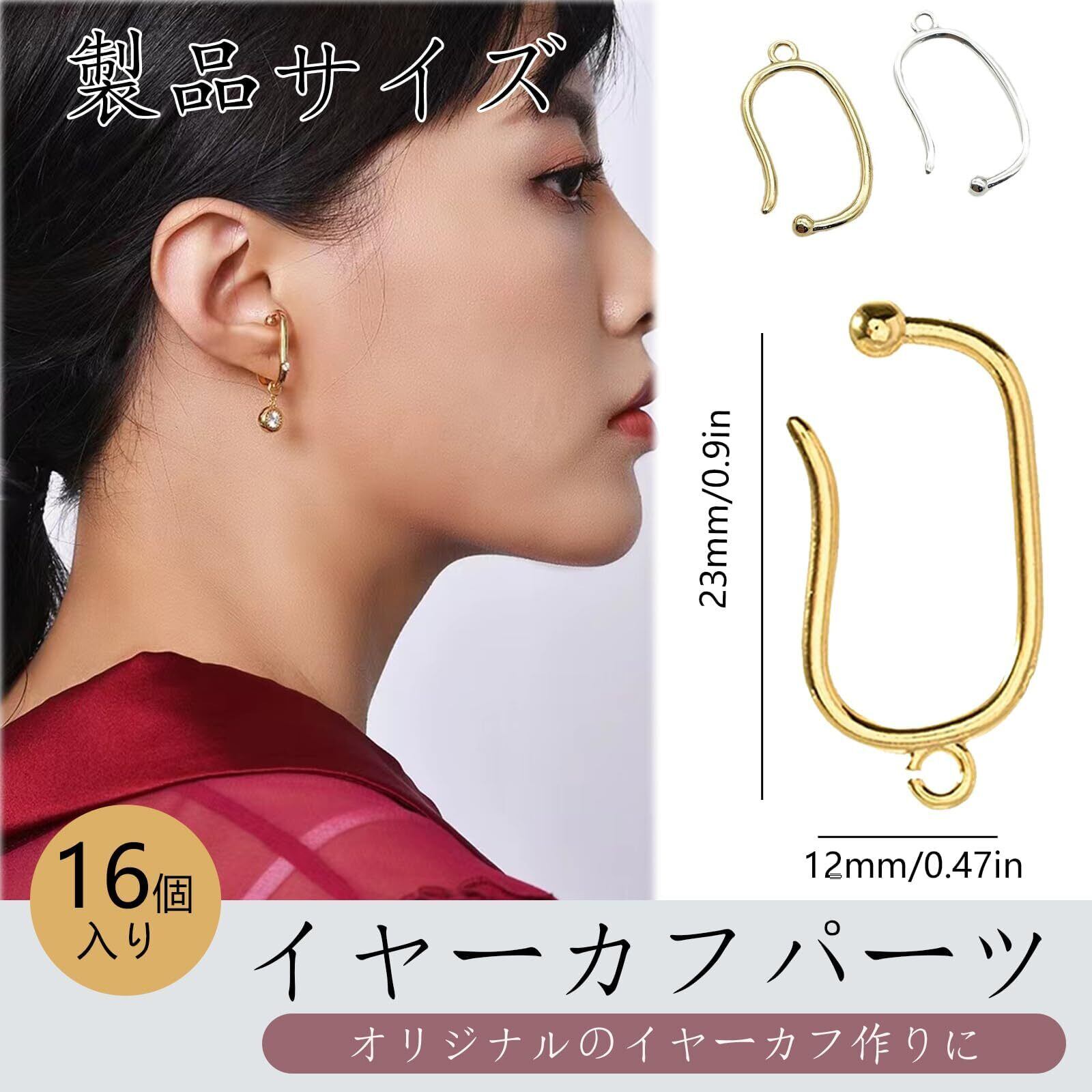 イヤークリップ ノンホールピアス パーツ パーツ部品16個入 イヤーカフ パーツ カン付き イヤーフック ゴールド ハンドメイド 手芸 アクセサリー 部品
