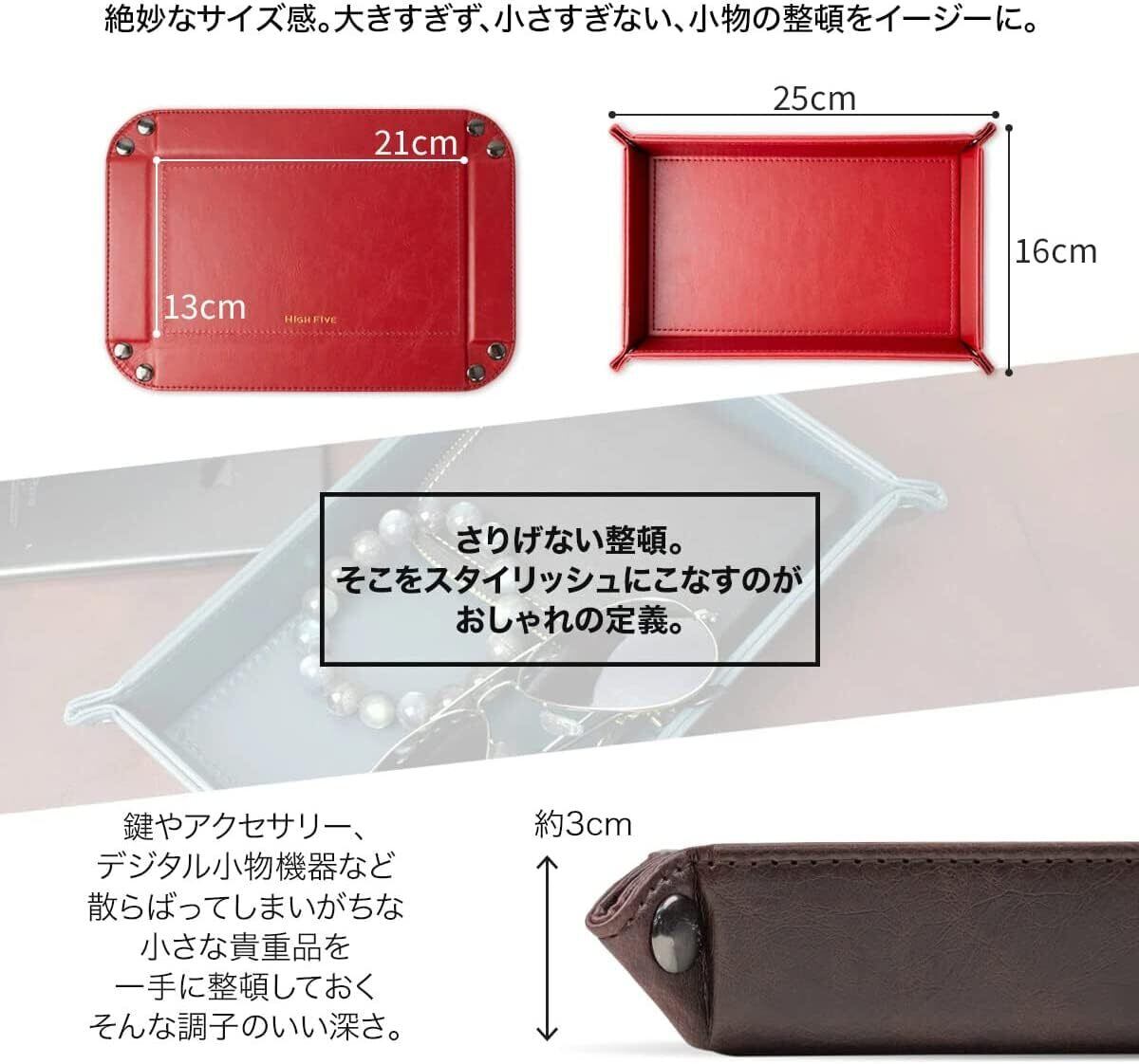 [HIGH FIVE] 長方形 レザートレー トレイ 小物入れ アクセサリー リモコン 鍵 腕時計 指輪 収納ボックス ダークブラウン