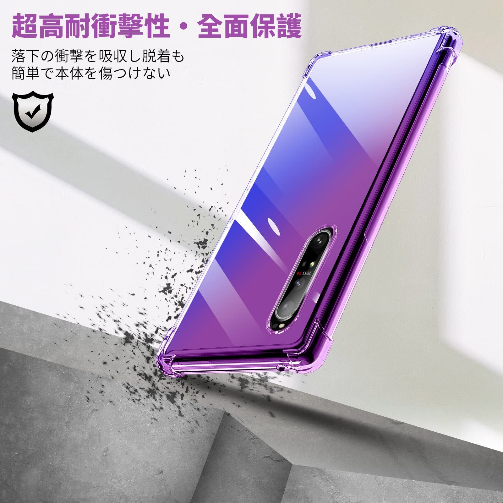 xperia5 II ケース 耐衝撃 クリア 薄型 軽量 TPU 黄変防止 米軍MIL規格 特徴 透明 一体型 SO-52A SOG02 カバー 衝撃吸収 スマホケース 紫+青 LR-08-XP5II-02