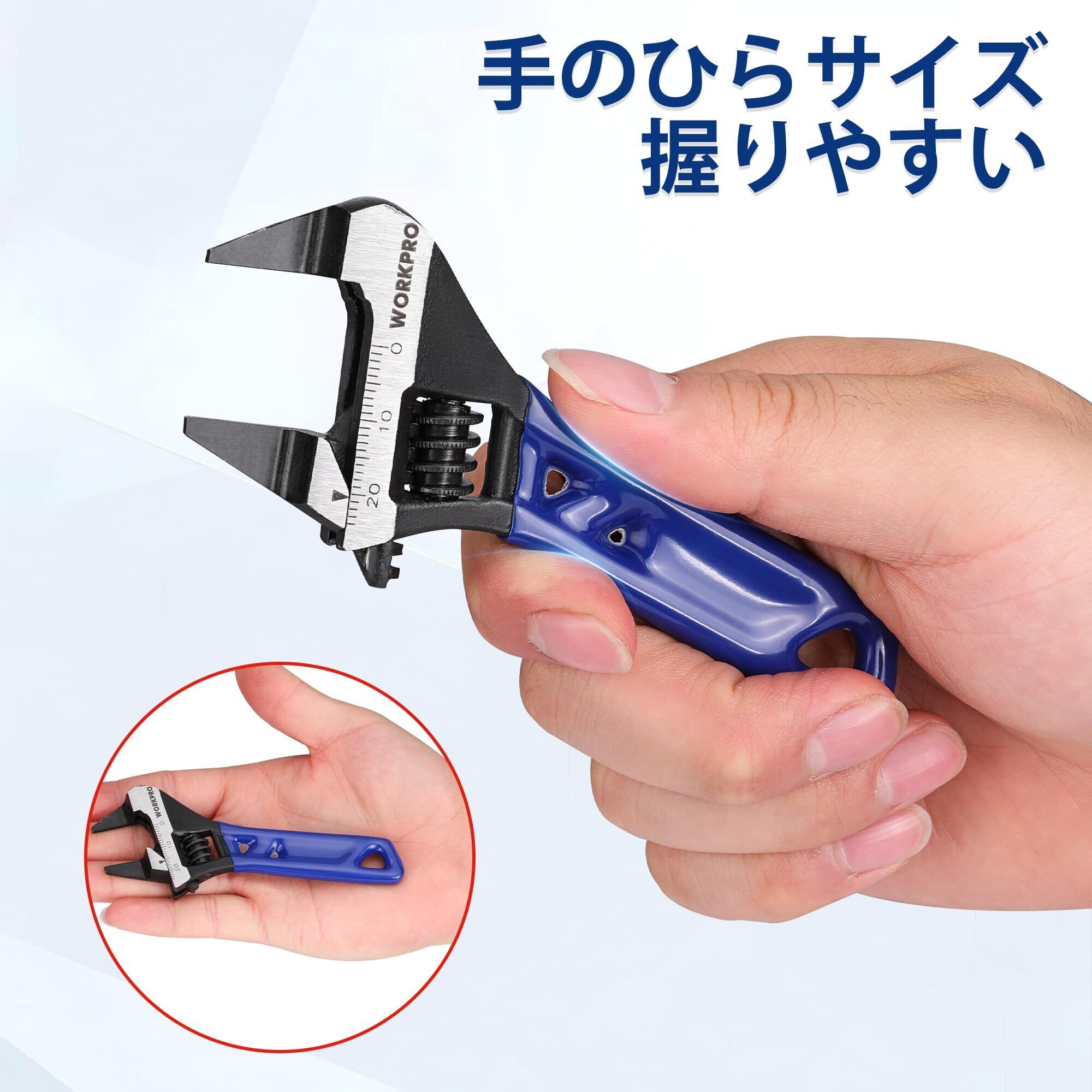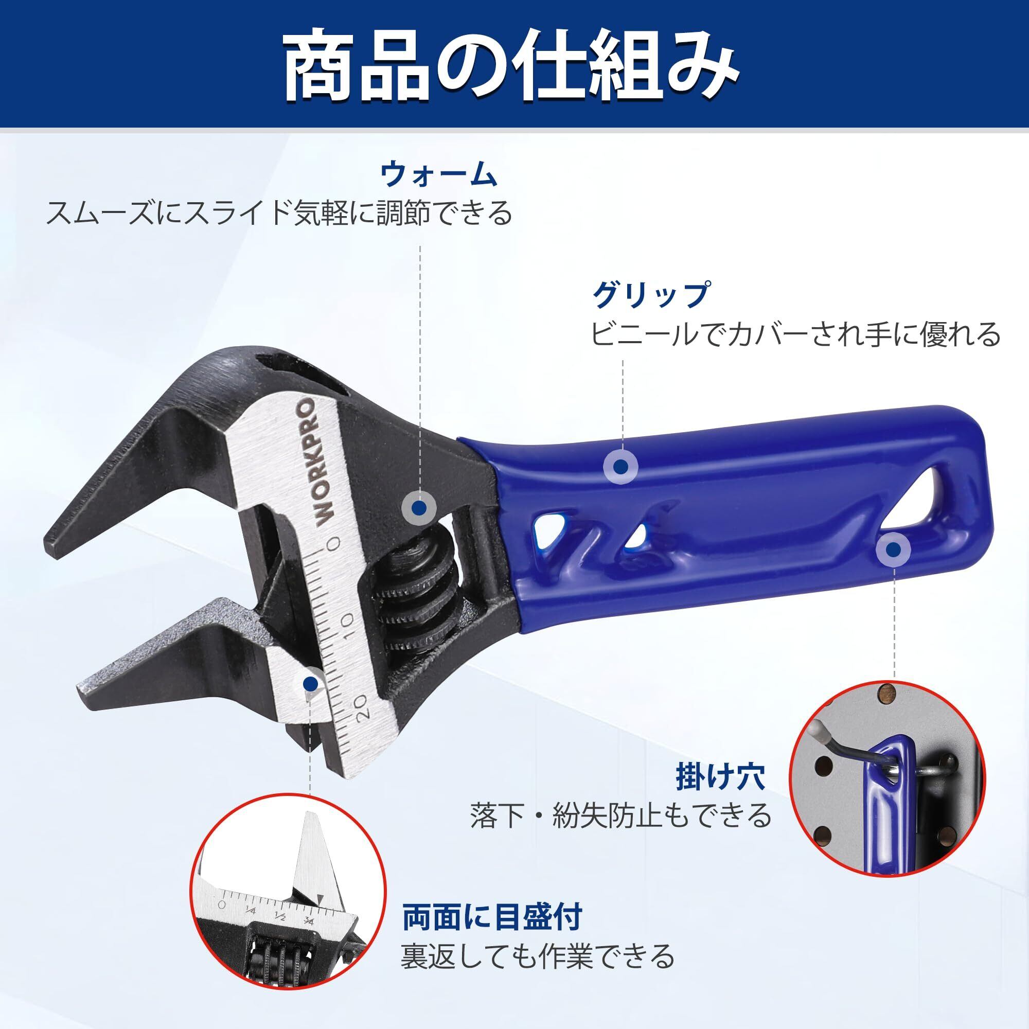 【先端薄型】WORKPRO モンキーレンチ ミニ ワイドモンキー アジャスタブルレンチ 水栓レンチ シートタイプ 120mm 最大開口24mm 調整可能 目盛付 CR-V 水道管 水栓 配管 自動車 オートバイ修理 機械修理