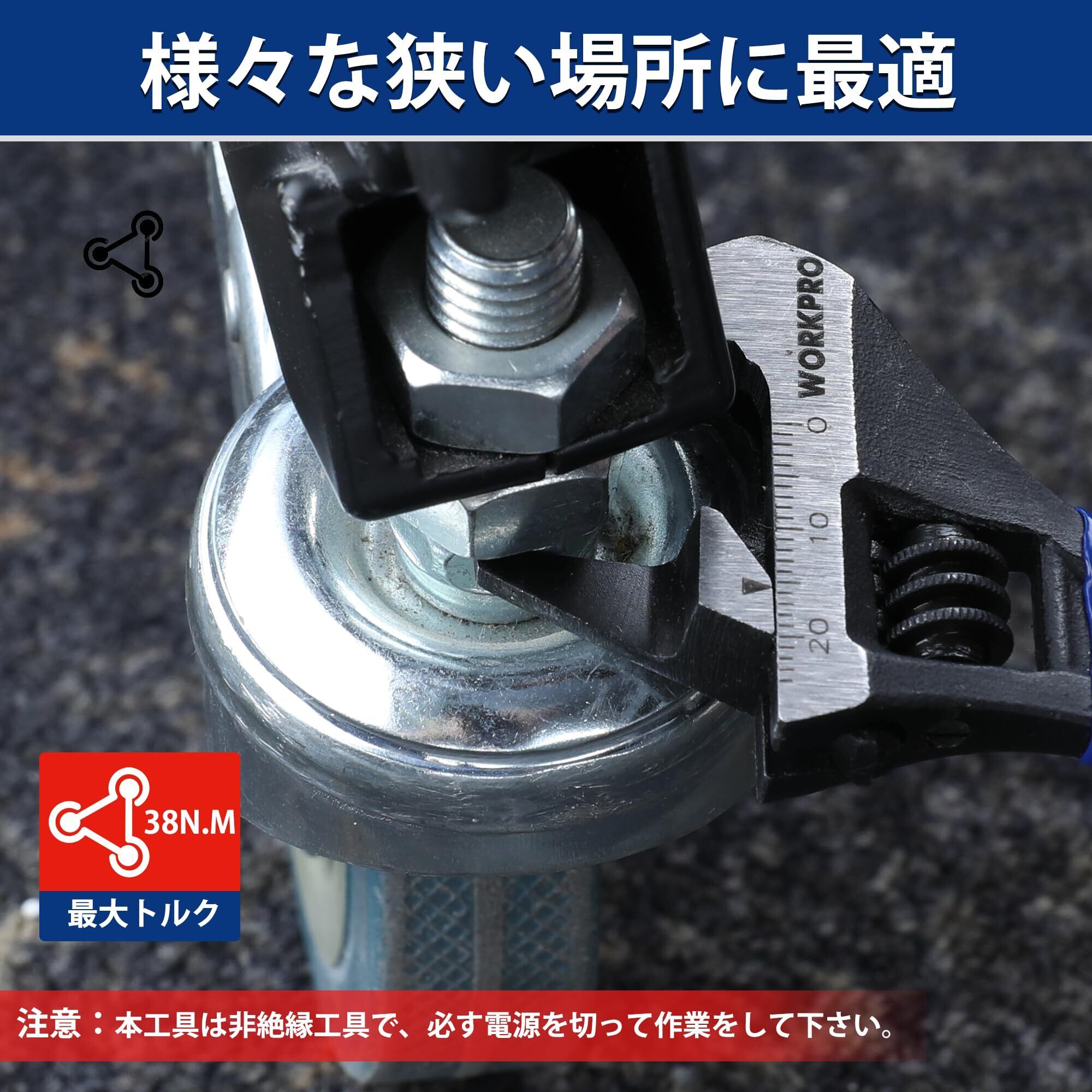 【ご注意】本製品は非絶縁工具のため、通電しているエリアでの使用は避けてください。薄型先端のため、最大トルク38N.Mで、重作業には適していません。サイズの適合しないボルトやナットに使用しないでください。
