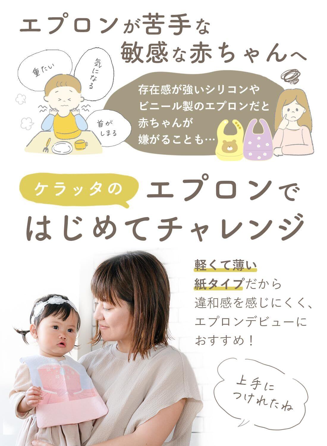 【持ち運びらくらく個包装】お出かけ先でのレストラン・食べ歩き・ピクニックに便利な使い捨てタイプ。汚れてもすぐにきれいなものに取り換えられるから写真に残すお宮参りやハロウィン、クリスマスなどのイベントにもお食事シーン以外でもよだれかけとして使用できるから、洗濯ものを減らしたい忙しい日も気軽に使えます。衛生的な個包装だからバッグに入れて必要な時にサッと取り出しゴミ箱がない環境でも使い終わったエプロンを袋に戻して一時的なごみ袋として使えます。