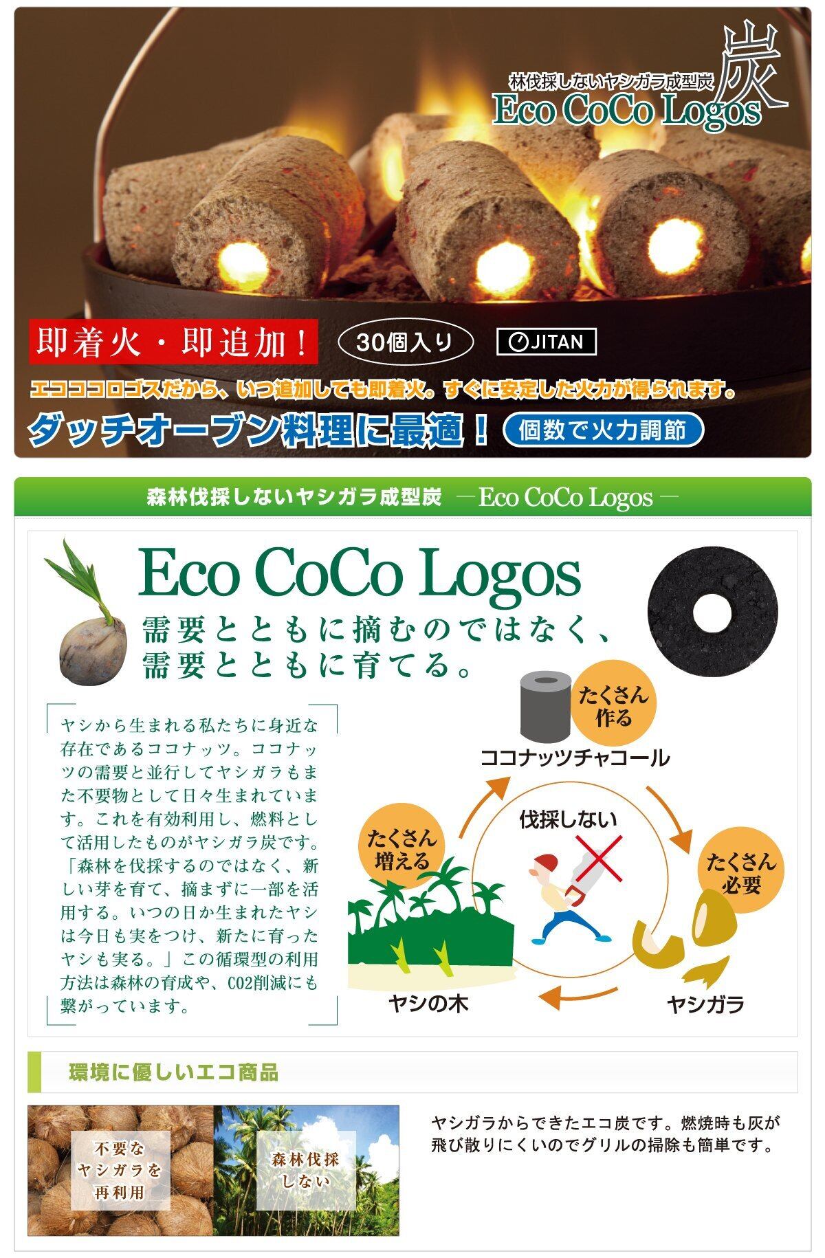 ロゴス(LOGOS) 固形燃料 エコココロゴス・ダッチチャコール30 83100105 炭 エコ炭 着火1分 業務用