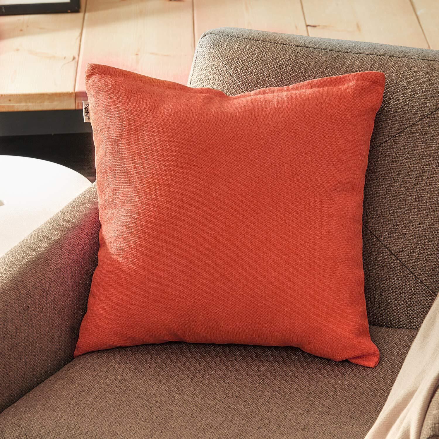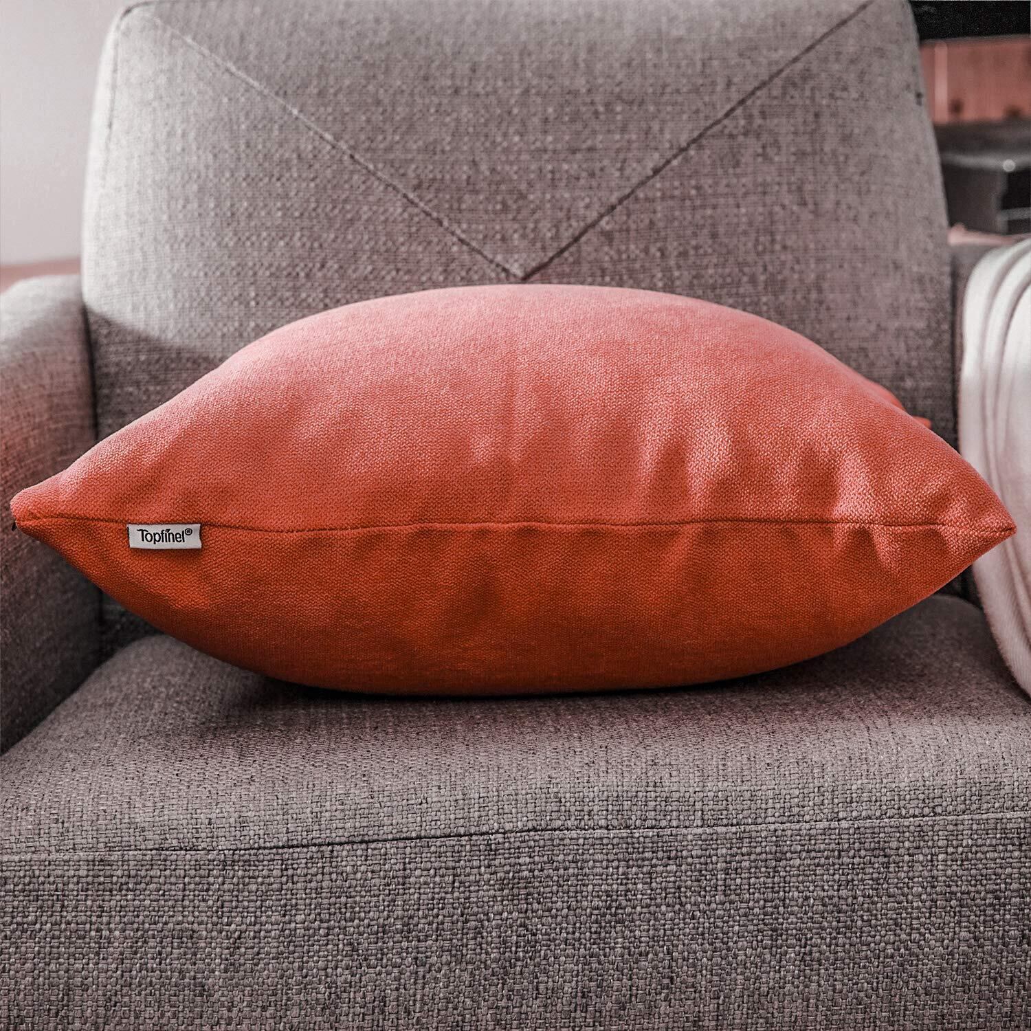 Topfinel クッションカバー リネンっぽい 45×45cm 北欧 おしゃれ 綿麻 無地 ソファ背当て 装飾枕カバー 座布団カバー オレンジレッド 2枚セット(全18色)