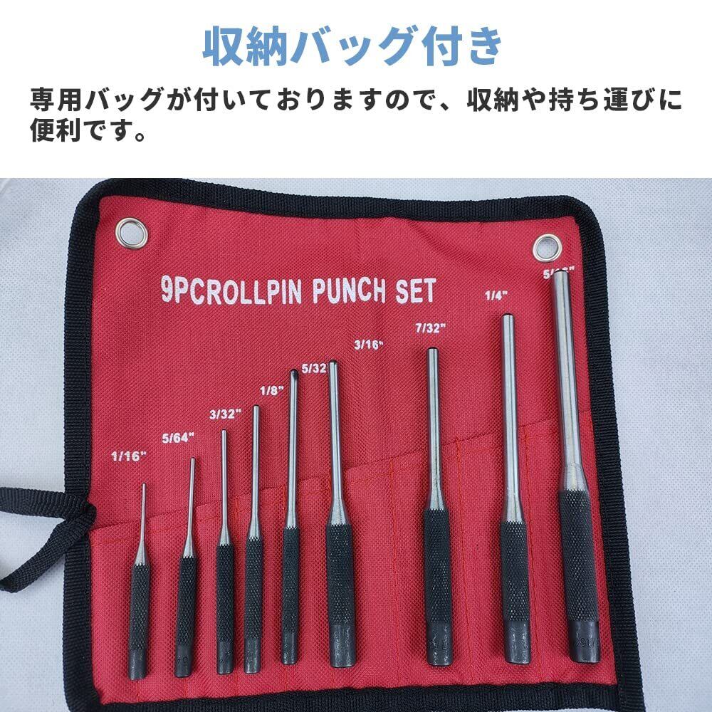 ピンポンチ 9本ポンチセット 穴あけ工具 ピン抜き 工具 エアガン DIY 高精度 家庭用 工業用 収納バッグ付き 携帯便利 1/16" 5/64" 3/32" 1/8" 5/32" 3/16" 7/32" 1/4" 5/16"