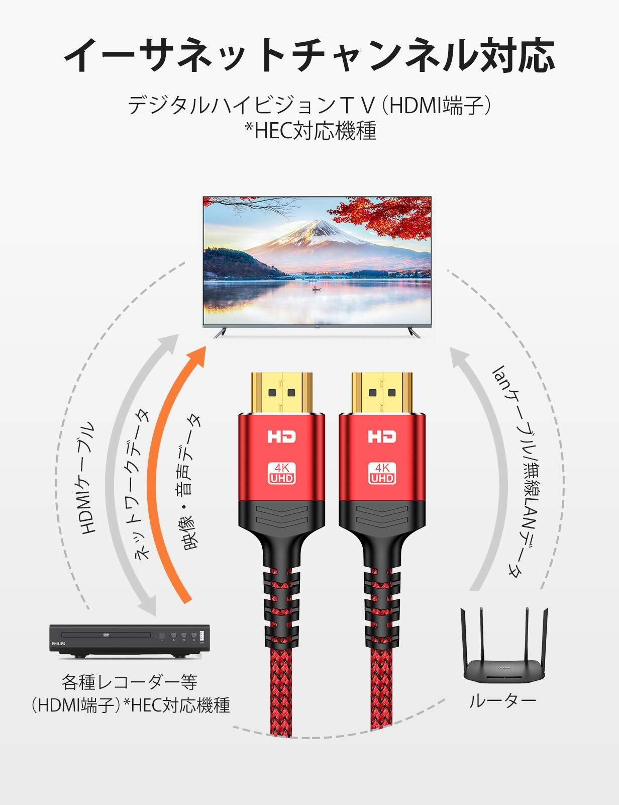 【多様な出力対応】HDMI ケーブルは TV 4K, ブルーレイプレーヤー, TV, テレビやモニターとパソコン、レコーダー・プレイヤー、AVアンプ、ゲーム機などを接続するにおすすめするHDMI-HDMIケーブルです。