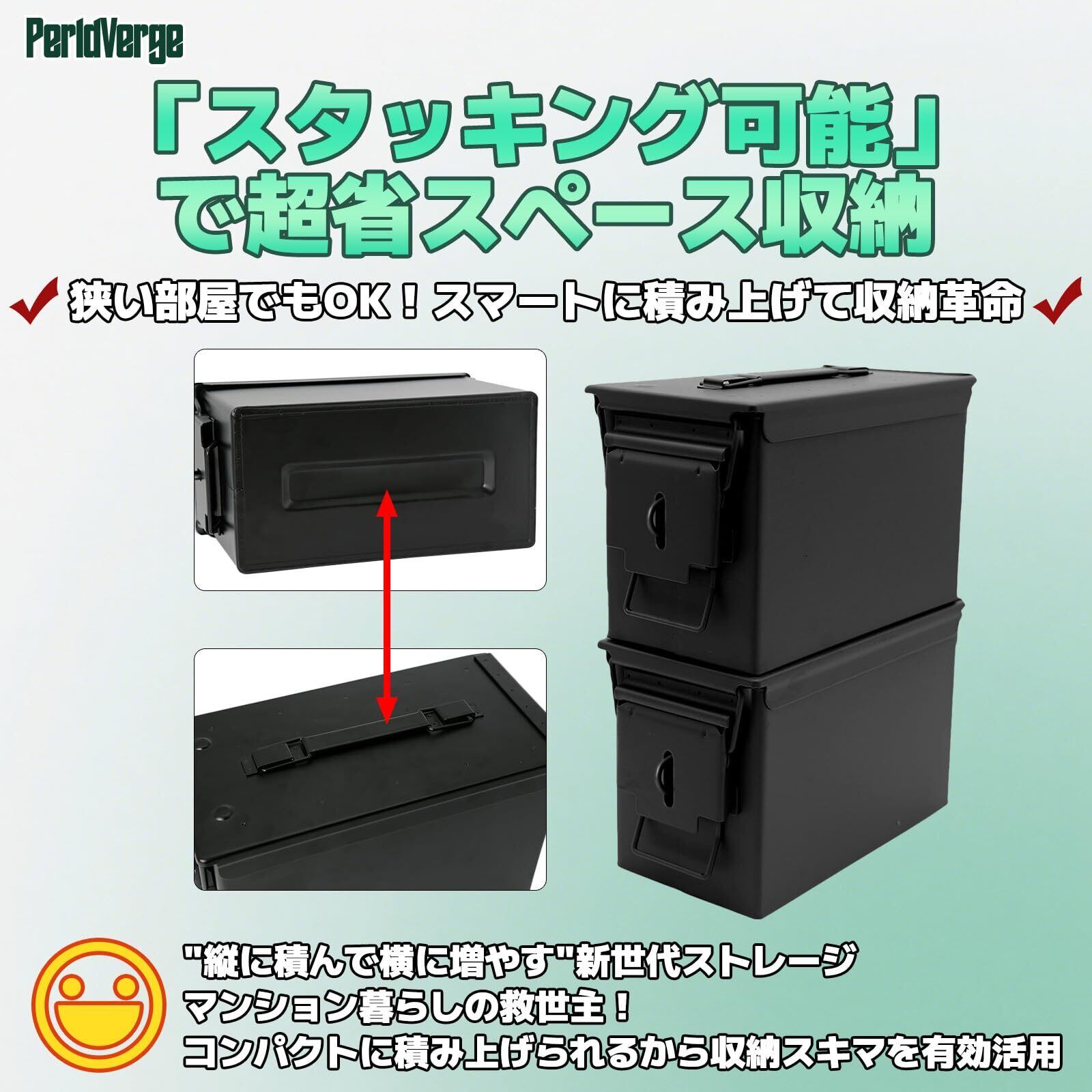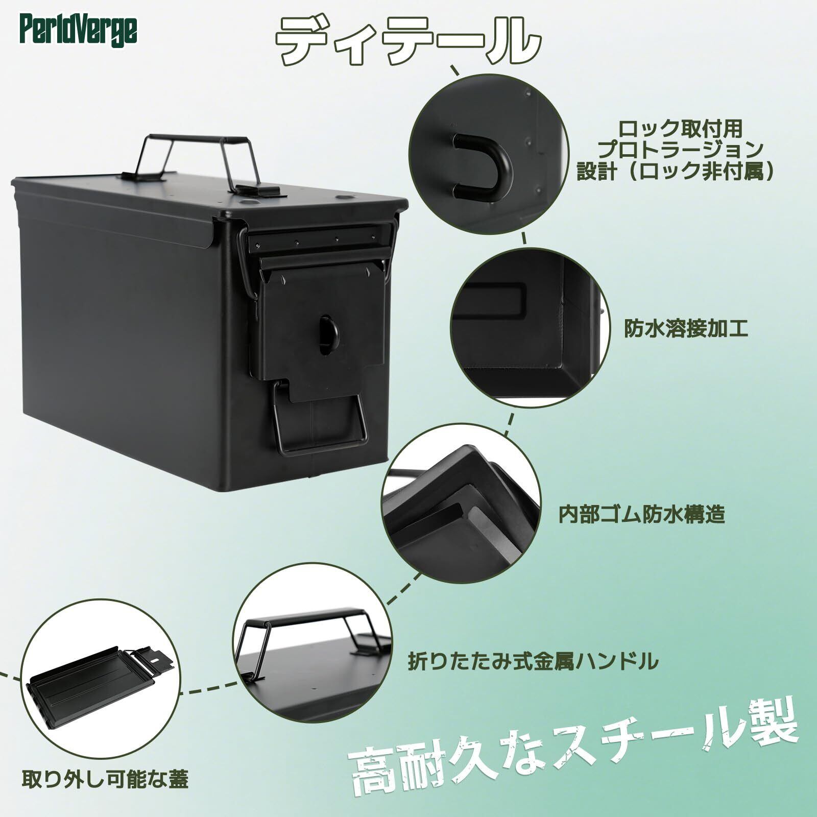 溶接式ロック設計:アンモ缶に穴を開けず、溶接で頑丈なロック取付部を実現。第三者による不正アクセスを防ぎ、貴重品を安全に保管できます(ロックは含まれていません)