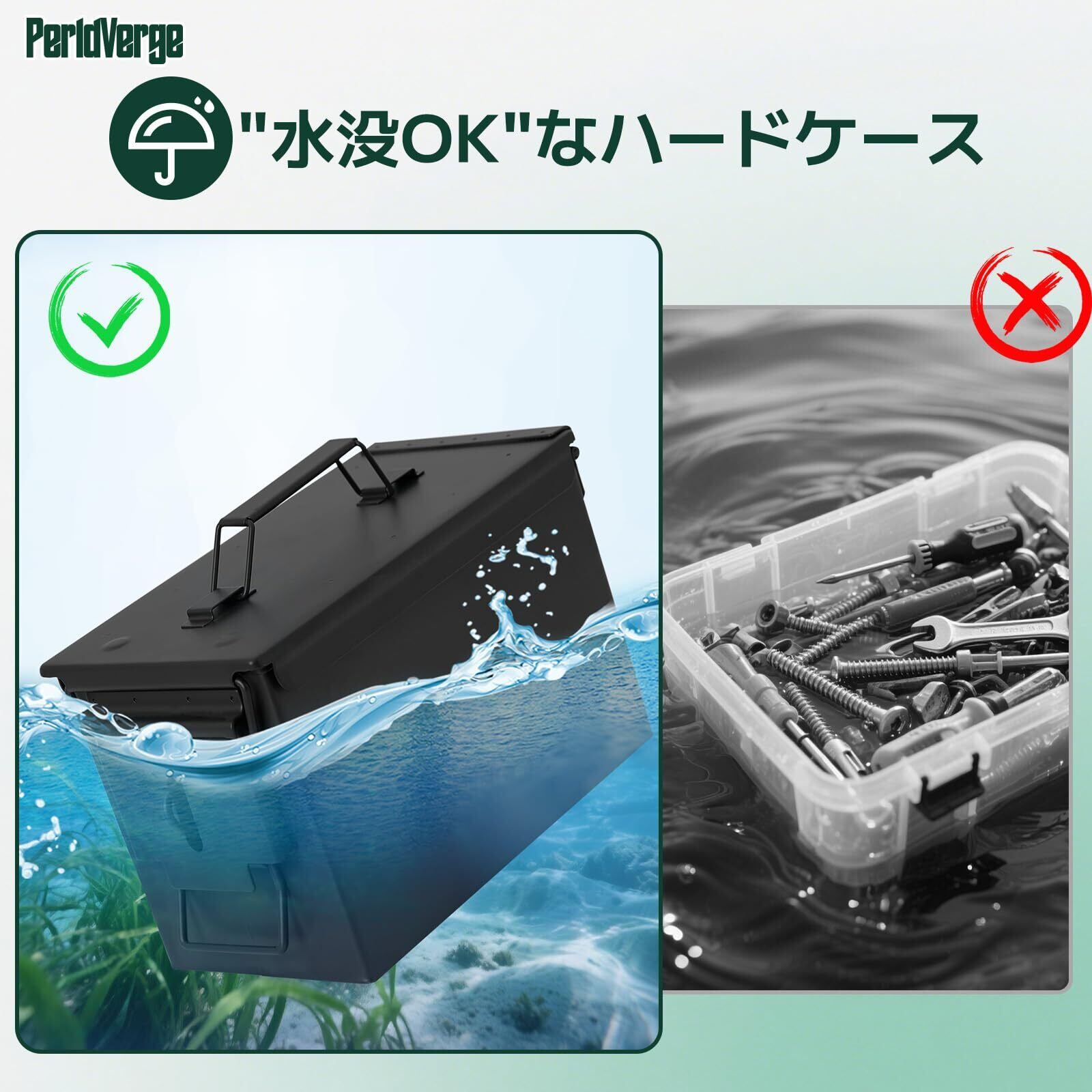 道具箱 ツールボックス 収納ボックス 工具入れ 小物入れ バッテリー保管箱 アンモ缶 バイク ツールケース 移動型 防滴・防じんスチールケース toolbox 防水 施錠可能 32×17×20cm(容量約6.86L)