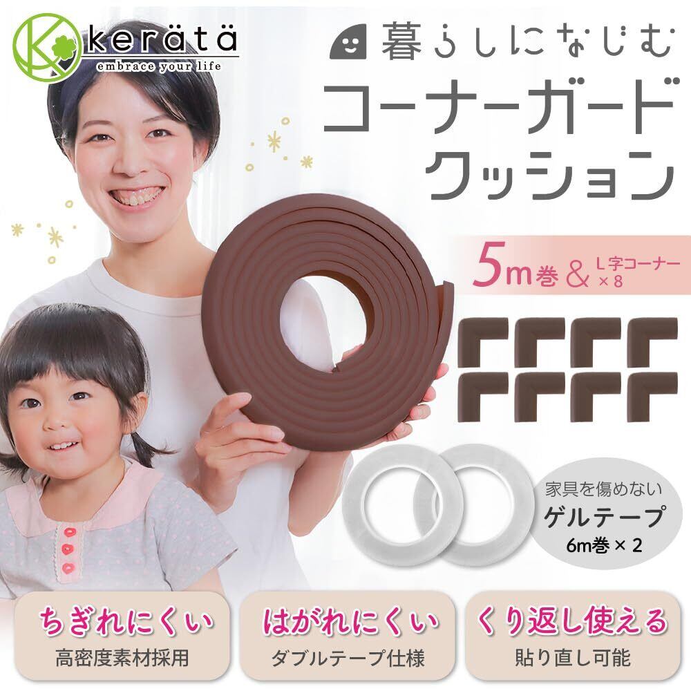 (ケラッタ) コーナーガード クッション 赤ちゃん 【5m+角用8個】 家具になじむ特注カラー ダブルゲルテープで剥がれにくい ごっつん防止 剥がせる 角 L型 (ウォルナット)