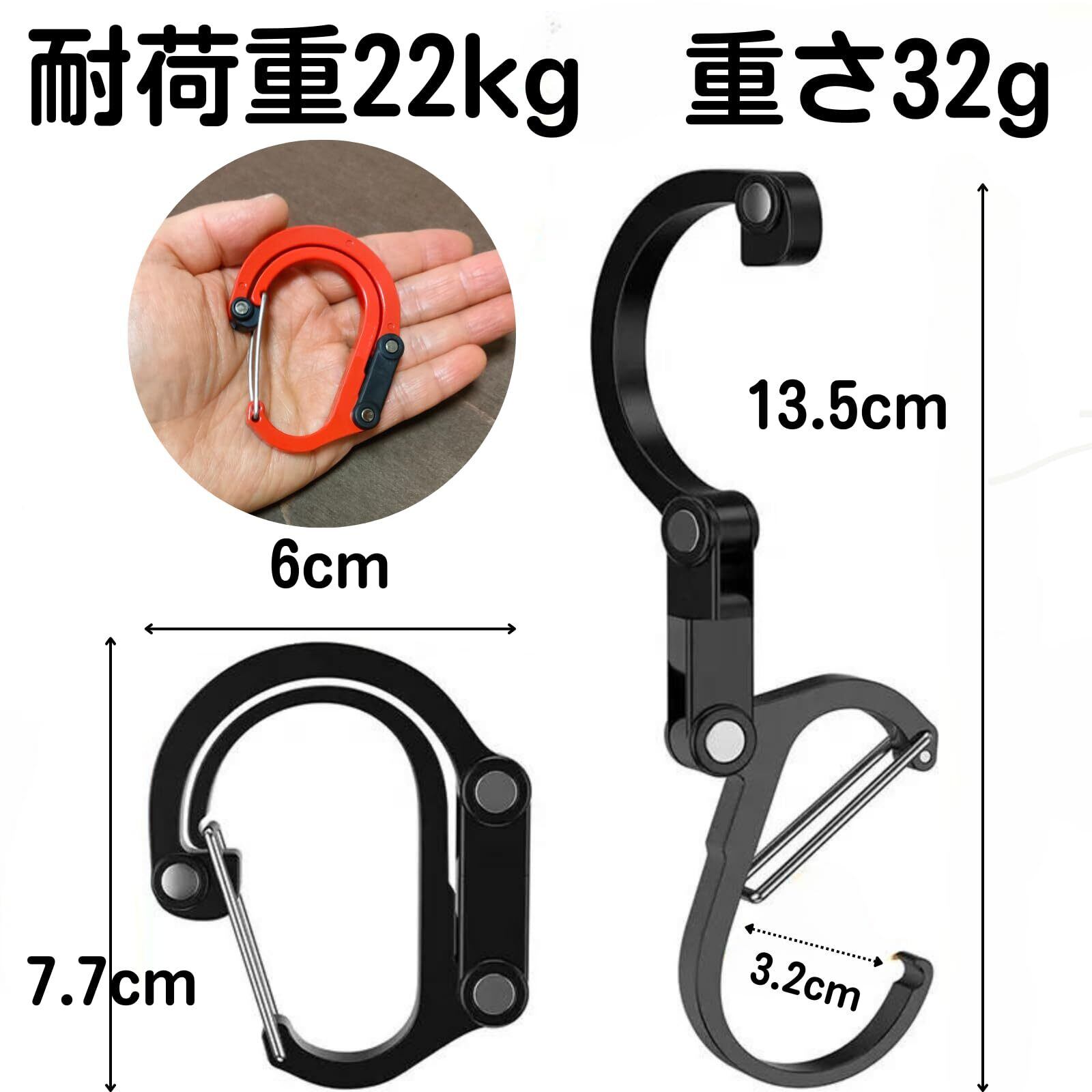 Mサイズ 多機能カラビナ型フック 荷重 22kg 1個入 アウトドア 荷物掛け カバン 吊り下げ
