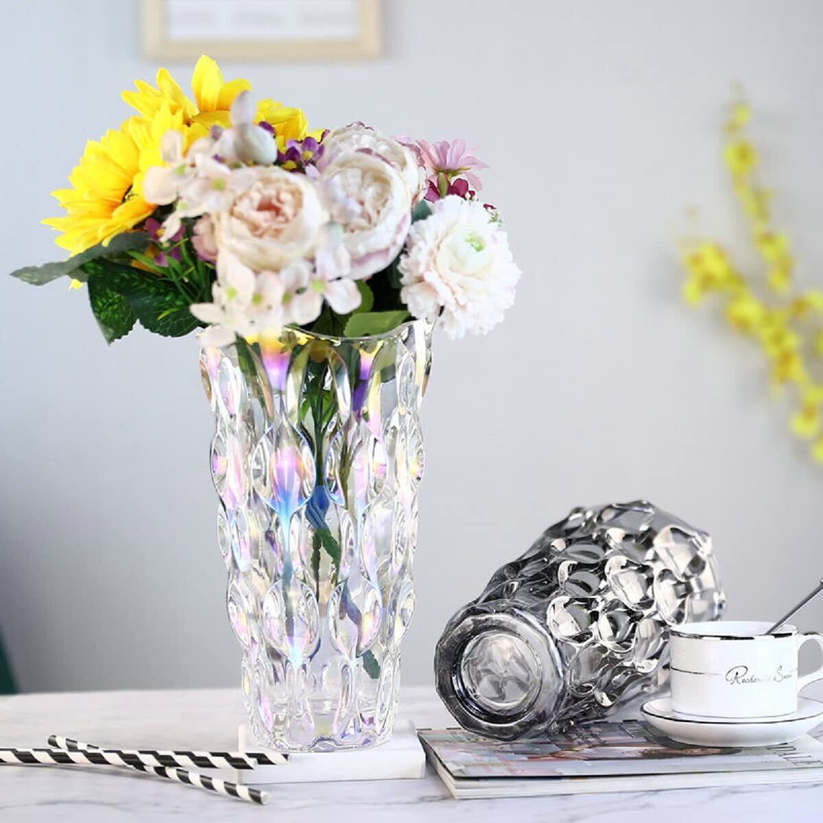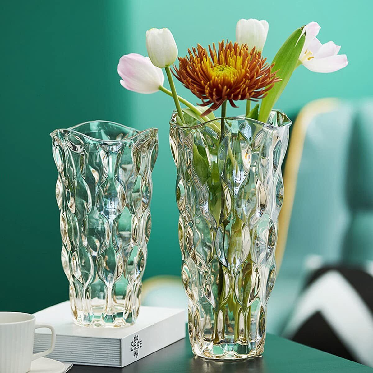 ガラス フラワーベース 透明 花瓶 ガラス おしゃれ 大 北欧 25cm グラデーション 現代 シンプル 透明 広口 花器 部屋 玄関 リビング インテリア プレゼント