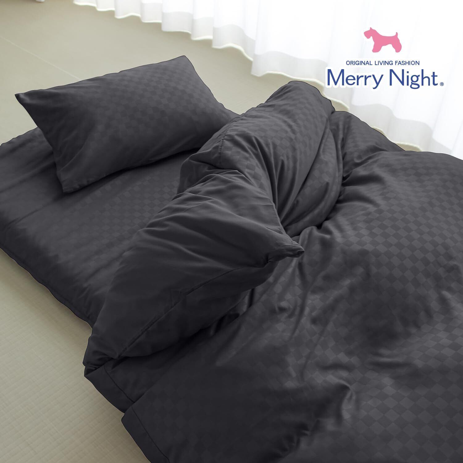 メリーナイト 掛け布団カバー 市松柄 ブラック シングルロング 約150×210cm 光沢感 和モダン 洗える シワになりにくい 速乾 PE12101-01