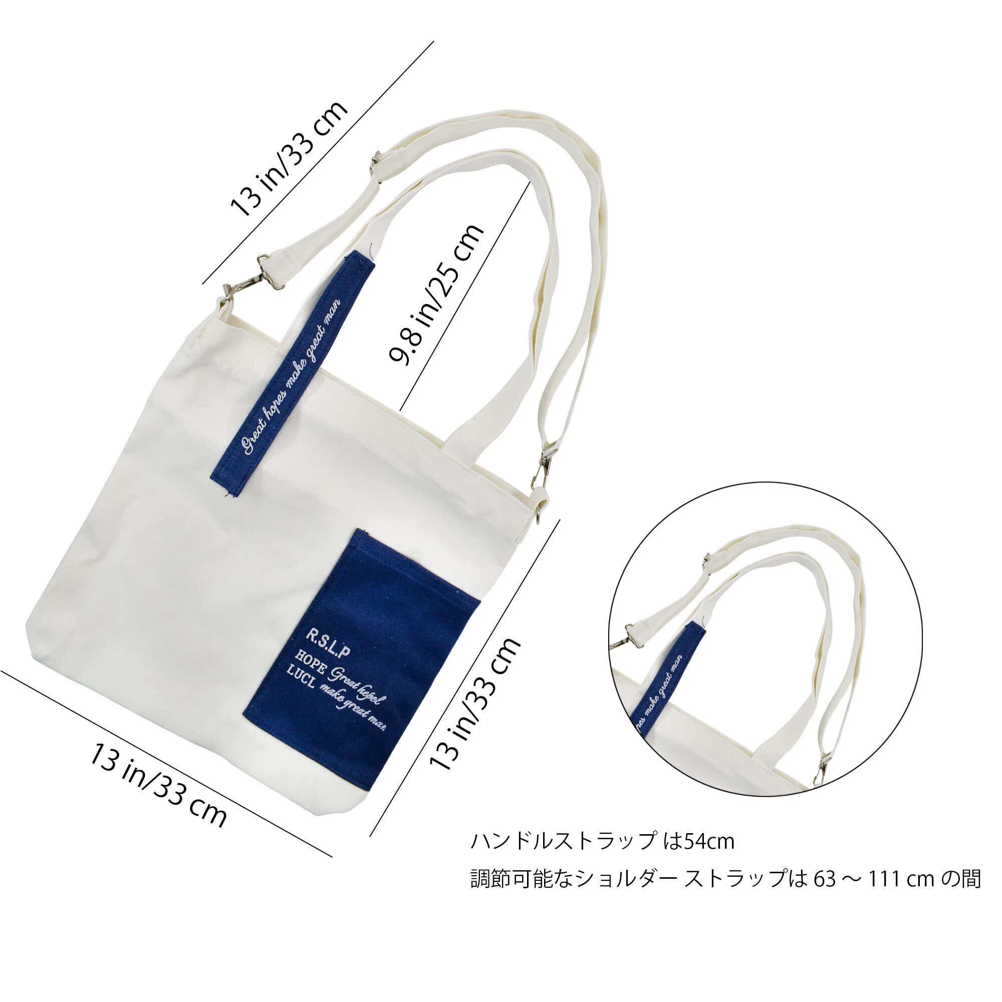 説明: 仕様: 素材:高品質のキャンバス カラー: 白と黒 、白と青 、黒と白 重量:0.25kg サイズ:34*37*6cm (採寸方法違いにより、1~2cmの誤差がございますので、ご理解ください) 機能: 1.ショルダーバッグ、斜め掛けトートバッグ、ハンドバッグの3wayで使える、お洒落なキャンバスバッグ。 2.外側に大きなポケットが配置されている、シンプルながら可愛いデザイン。小物類を整理して収納が可能で便利です。時間の節約だけでなく、スペースコストの節約にもなります。また、内側には重要な書類を収納するための小さな隠しポケットがあります。 3.ファスナー付きなので、バッグの中をのぞかれる心配がなく安心。 4.幅広い用途 : 学生の通学や塾や習い事などに、マザーズバッグとして、お出掛けや買い物の際のショルダーバッグとしてなど、様々な用途でお使い頂けます。プレゼントとしてもご利用いただけます。 5.さまざまな色をお選びいただけます: このトートバックは 白と黒 、白と青 、黒と白でデザインされています。お好きな色をお選びください。 6.重さはわずか0.25kgで、とても軽くて持ち運び便利です。 7.このおしゃれなバッグは恋人、女性の友達や家族へのプレゼントに最適です。 ( ご注意:他の販売者はEnkrioの法的販売業者ではありません、製品を信頼しないでください。)