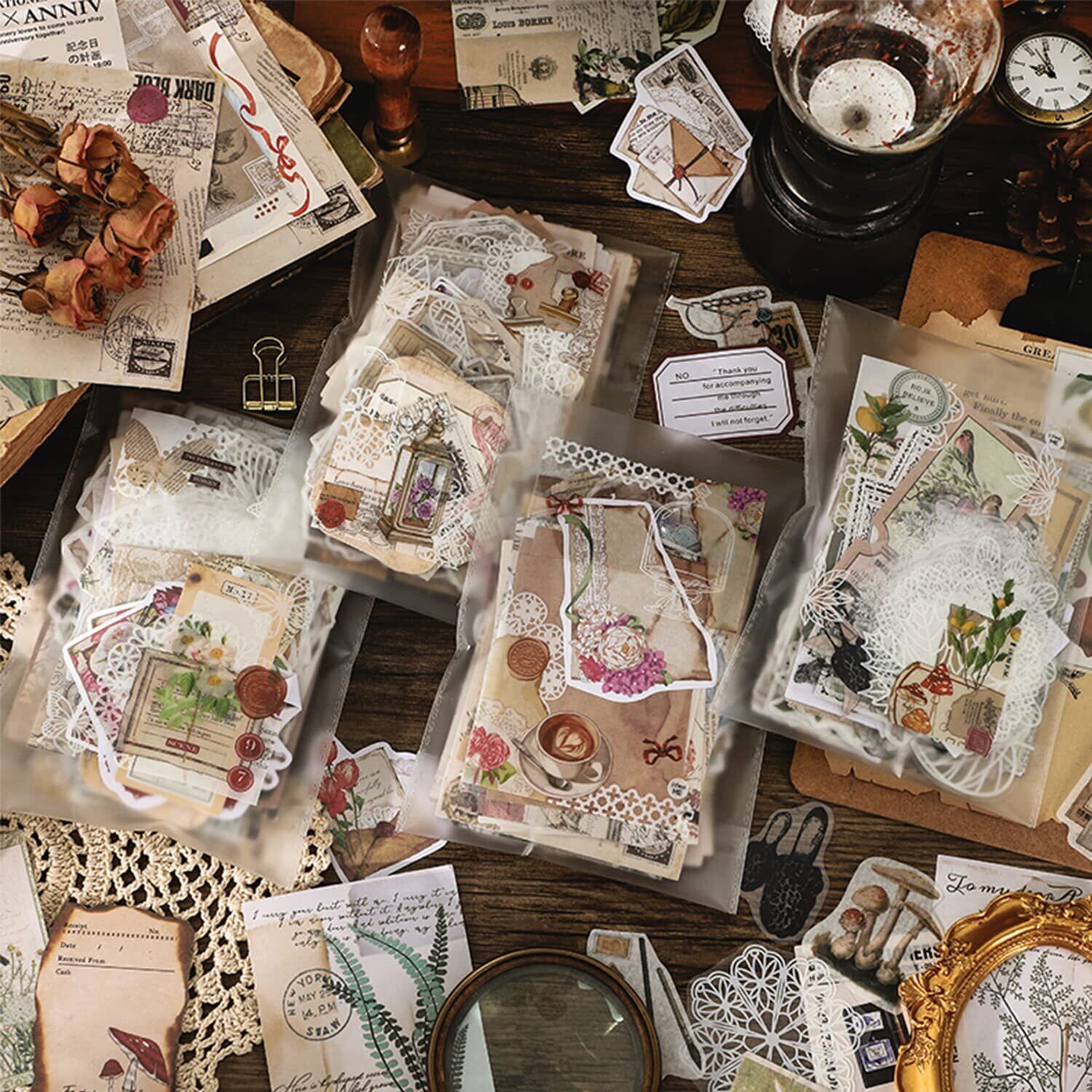 260枚 大容量 コラージュ 素材 シール ステッカー 手帳素材パック レトロ アンティーク フレークシールステッカー デザインペーパー 素材紙 和紙 メモ用紙 カード 紙モノ ノート スケジュール カレンダー (山野)