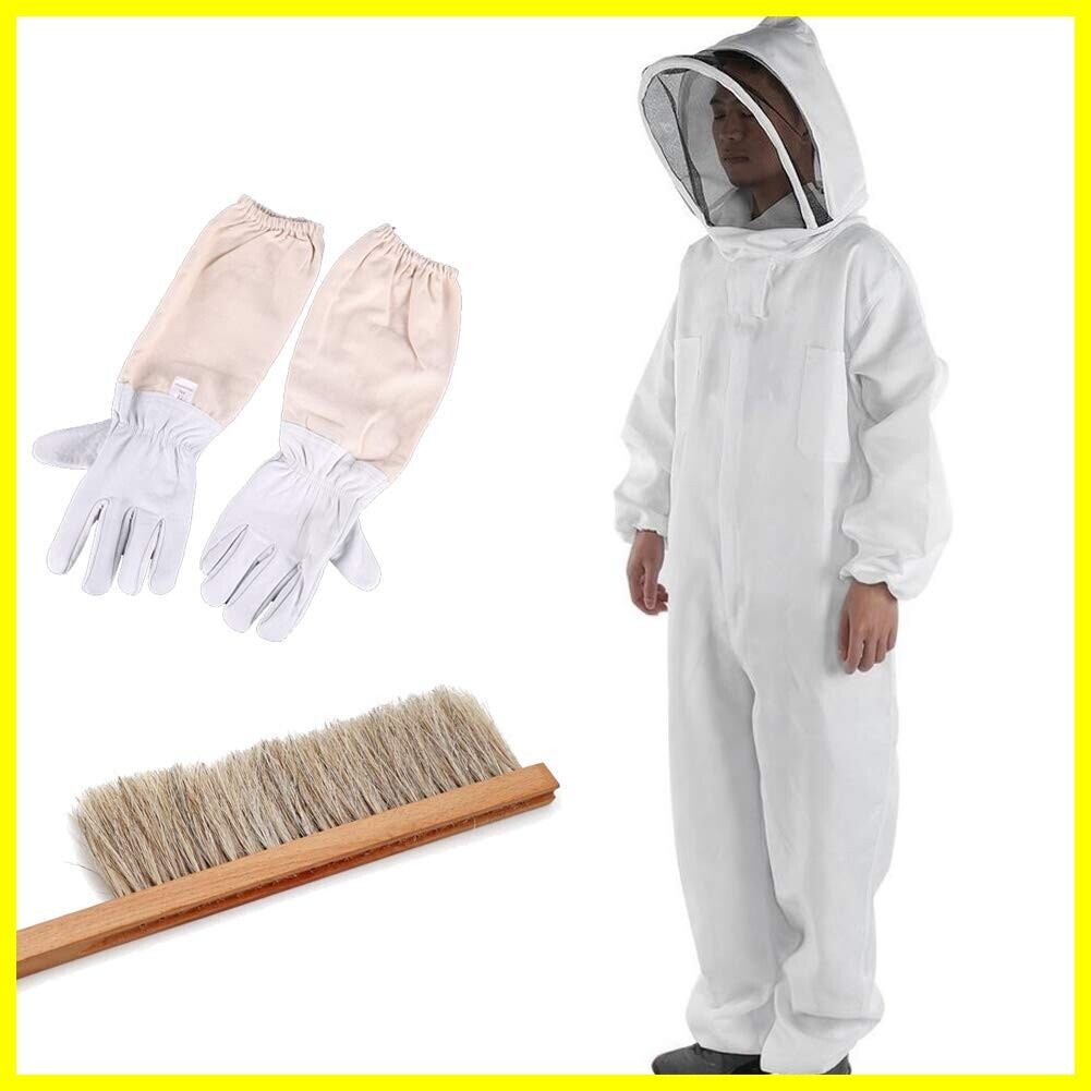 [Bonheur] ハチ防護服 防護服 養蜂器具 蜂 スズメバチ 駆除 害虫駆除 一体式 ブラシ手袋付き 三点セット フェイスネット 取り外しやすい