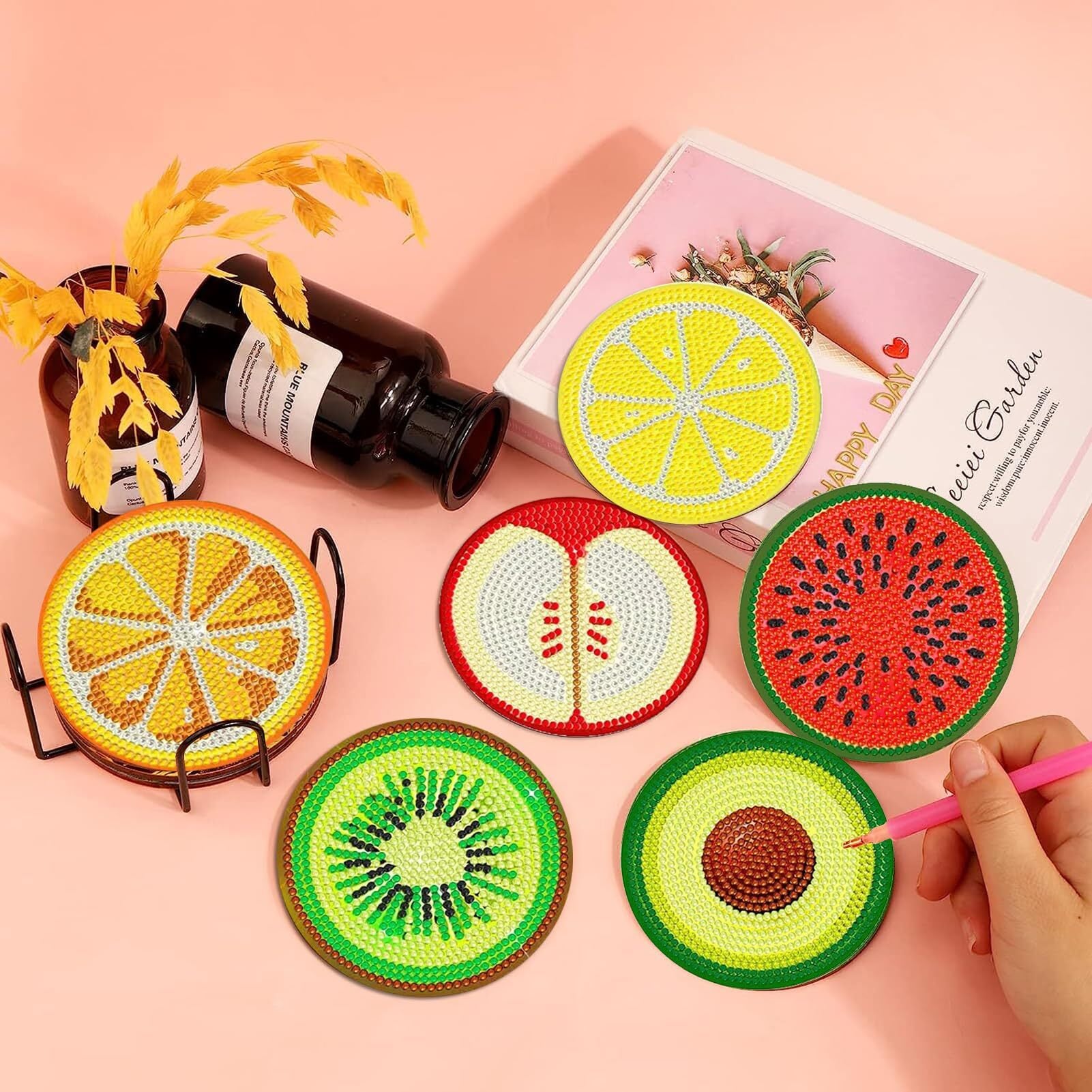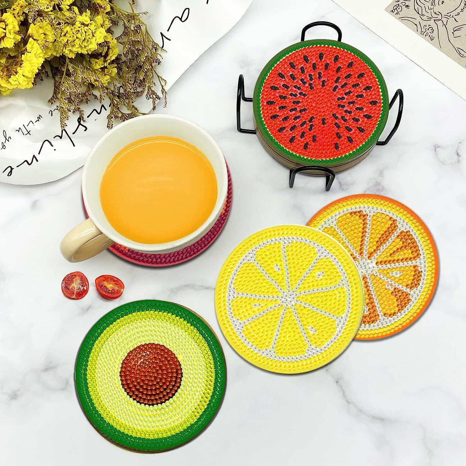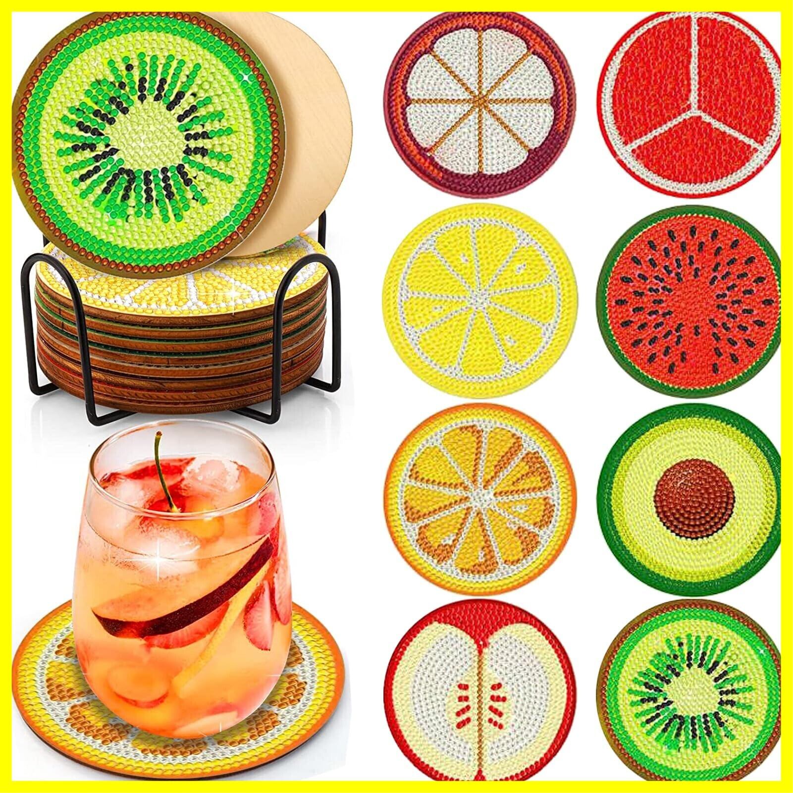 【商品仕様】コースター素材:木製、サイズ:直径10cm、セット内容:コースター8+ホルダー1+ダイヤモンド塗装工具セット