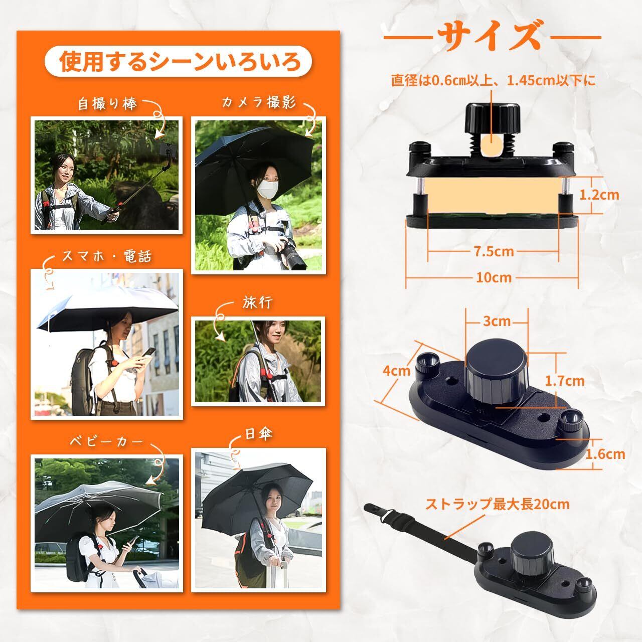 UME-STAR 傘ホルダー リュック用 手ぶら傘 リュック 傘 固定 ホルダー 手ぶら 写真撮影 ハンズフリー アウトドア ストラップ 晴雨兼用 (黒 2個)