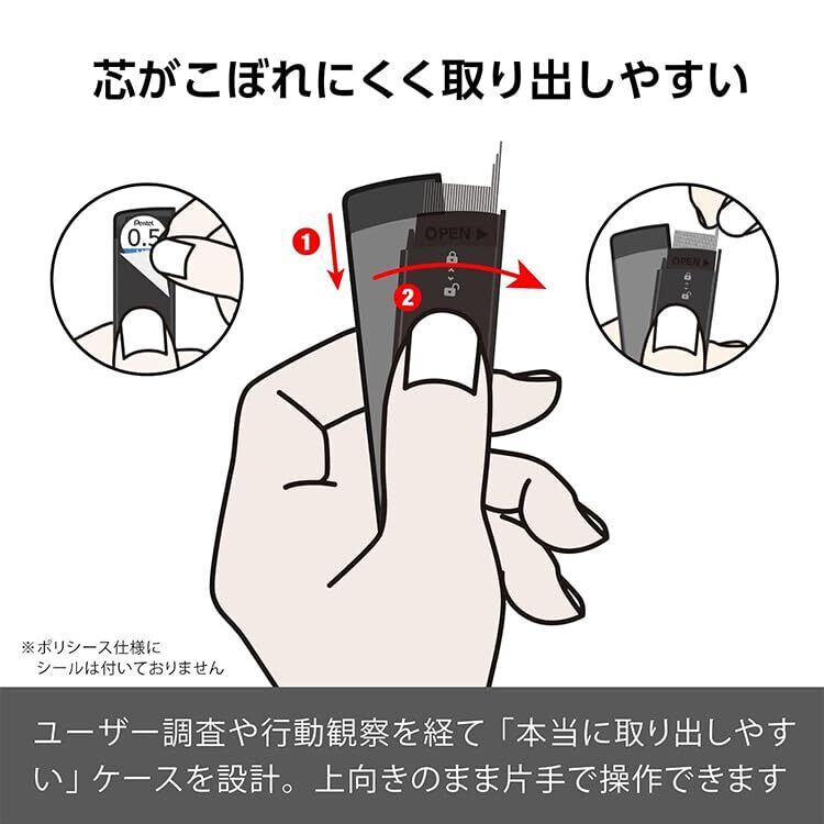 ケースを上向きのまま片手で操作できるから、芯をこぼすリスクを減らせます。
