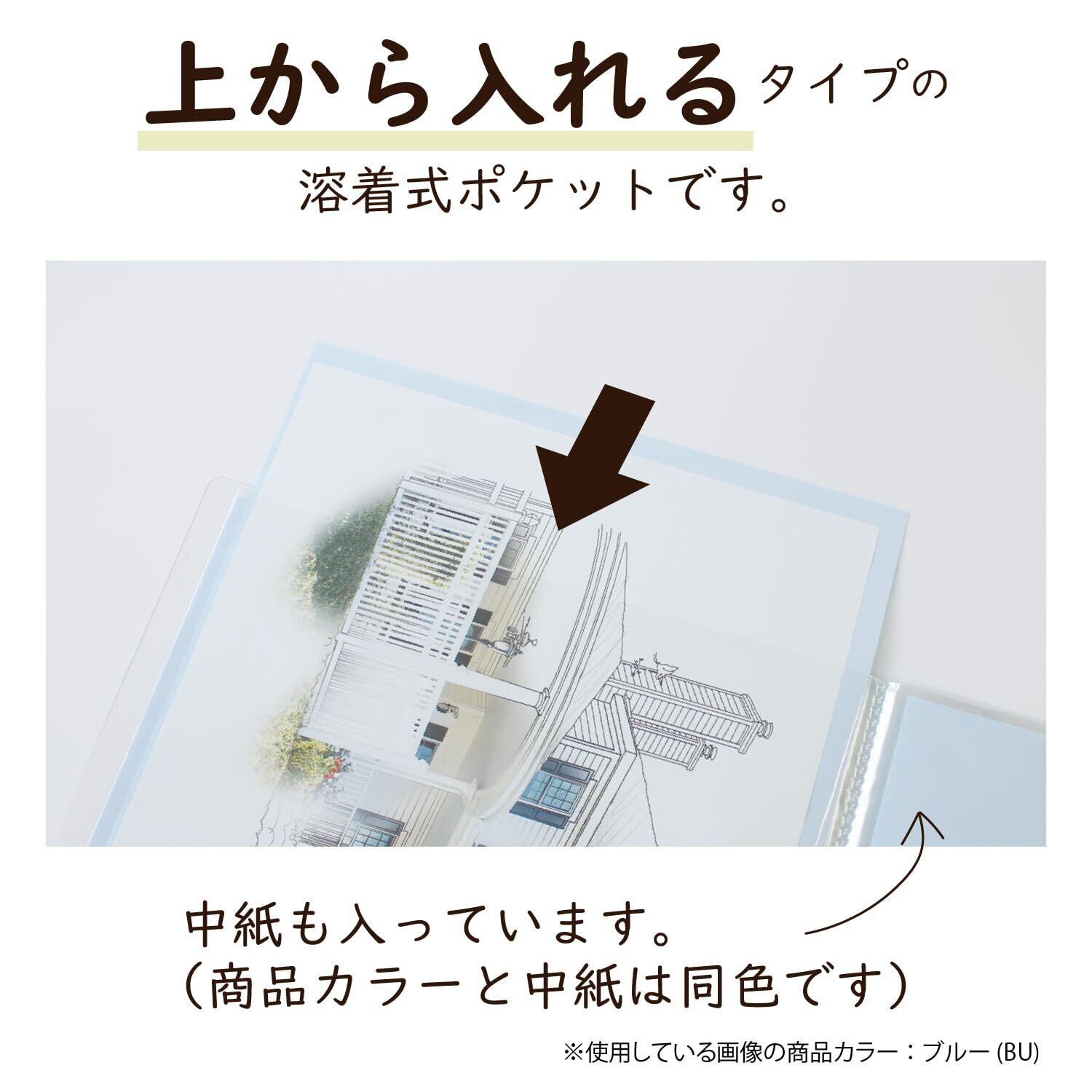 ポケットは見開き、ページをめくりやすい溶着式のホルダーです。