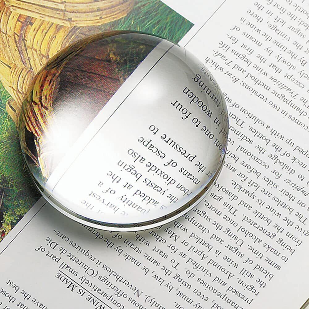 光学(オプティカル)ガラスならではの、 ルーペ機能を持つペーパーウェイト。(ルーペ倍率は3倍程度) デスクトップで活躍する実用的アイテム。