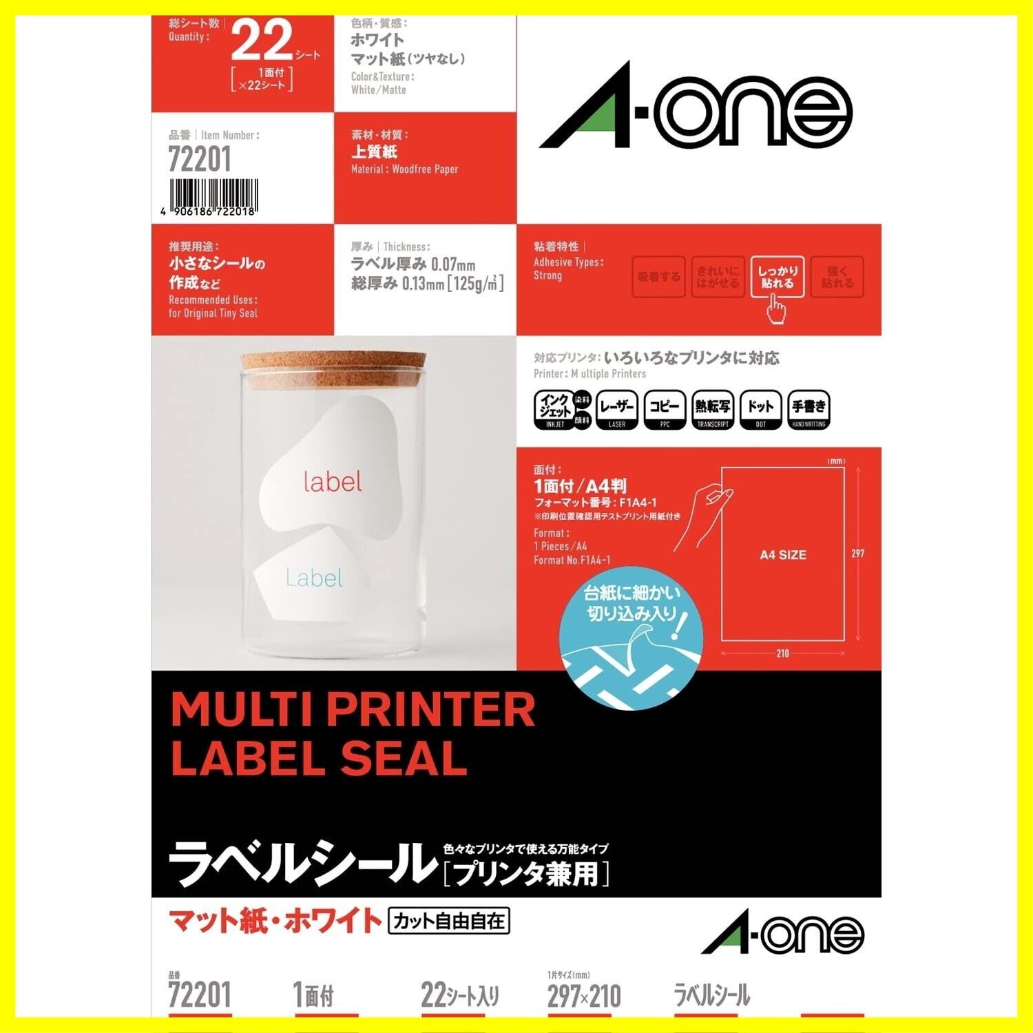 エーワン ラベルシール A4 ノーカット はがしやすい加工付 22シート 72201